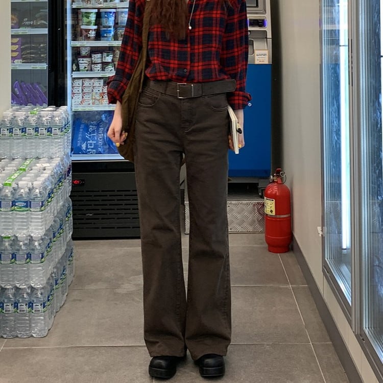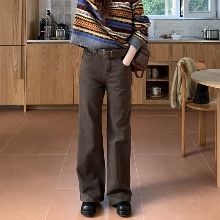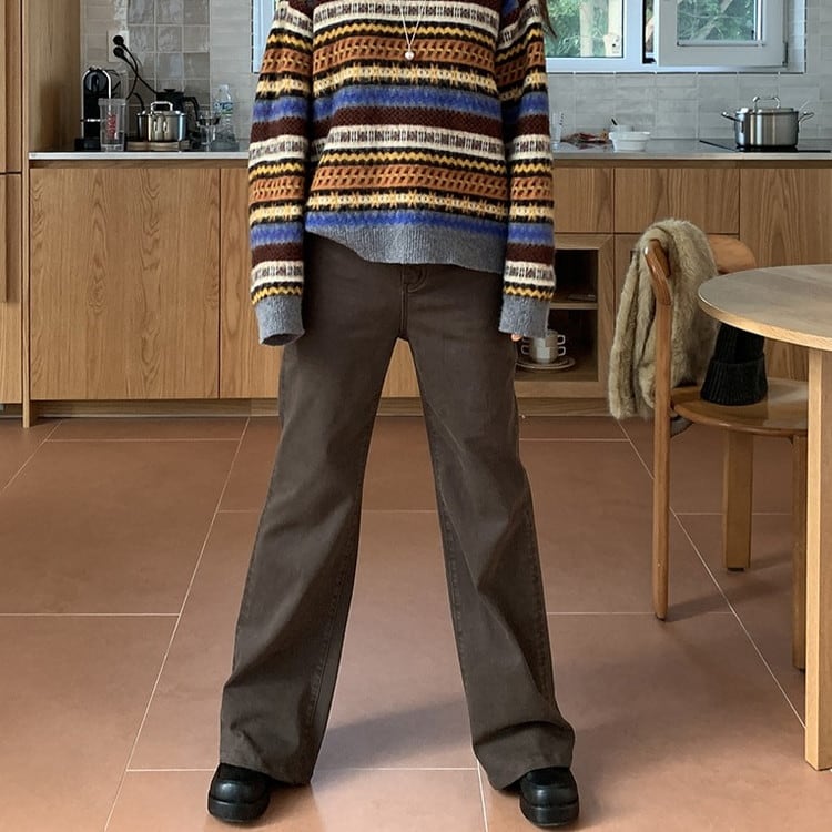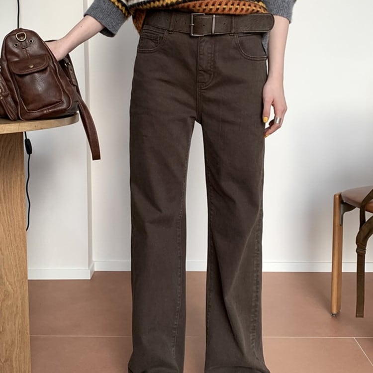 ストレッチスリムフィットブラウンデニムパンツ [am03467]