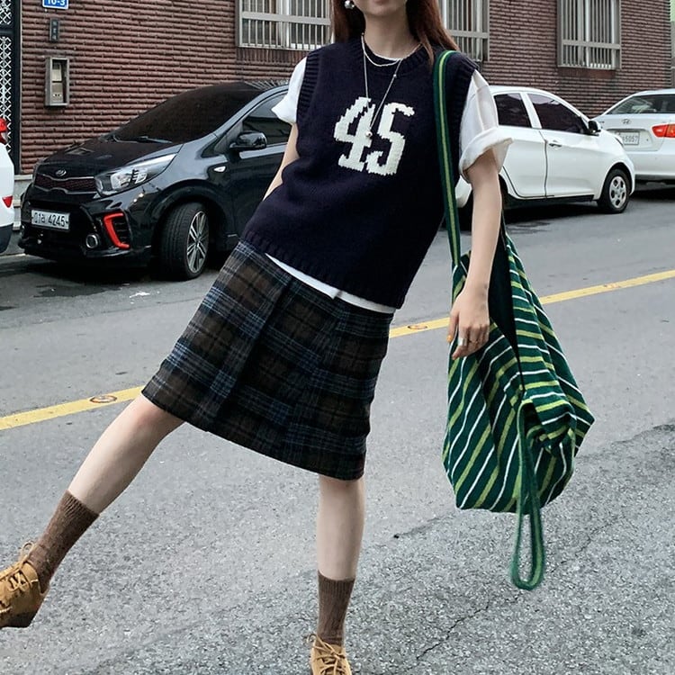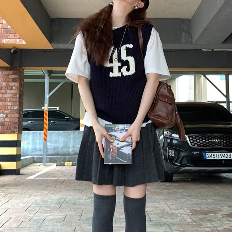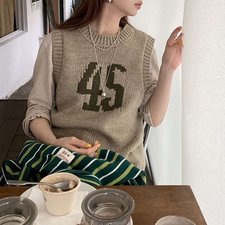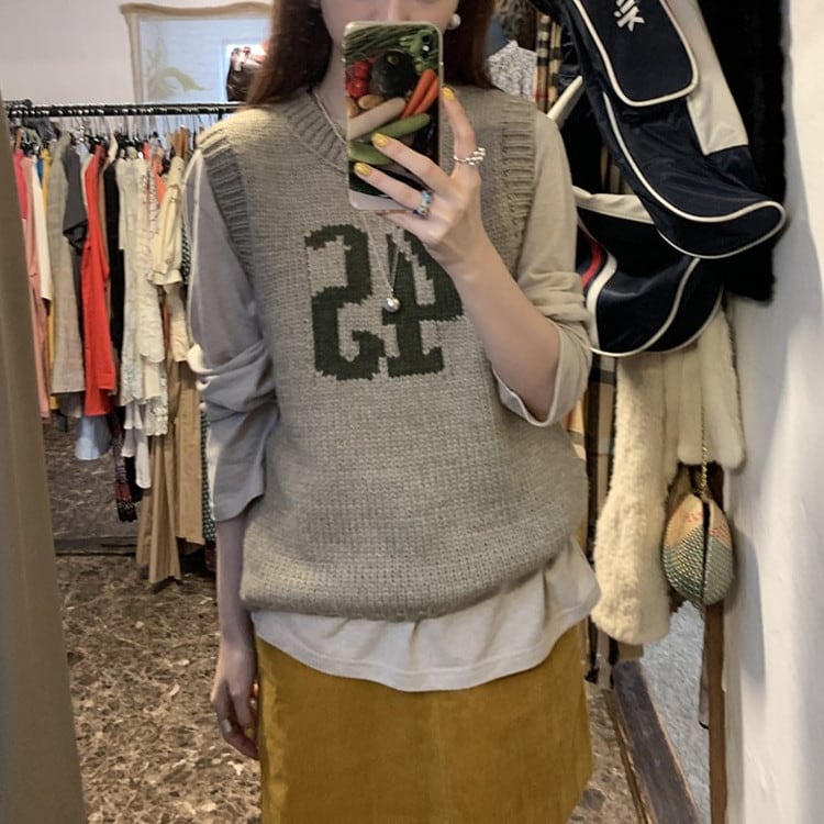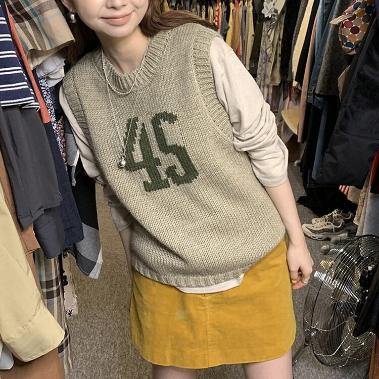 クルーネックナンバーロゴニットベスト 2color [am03469]