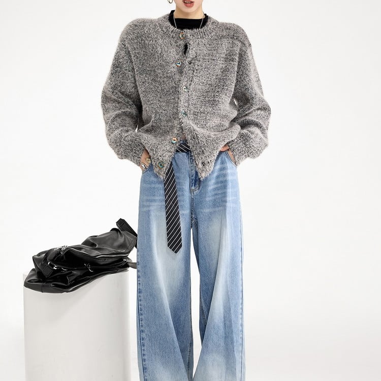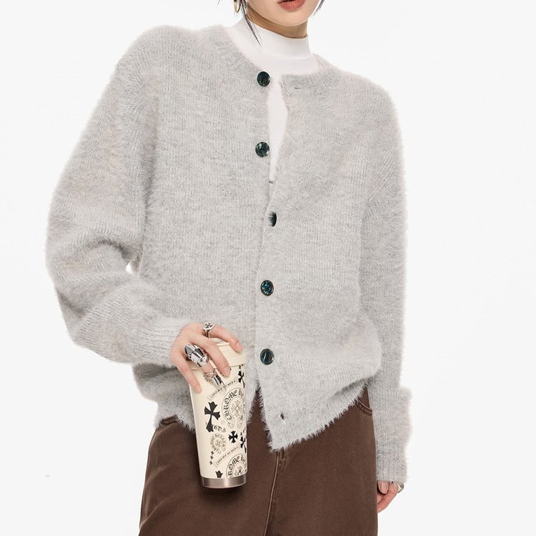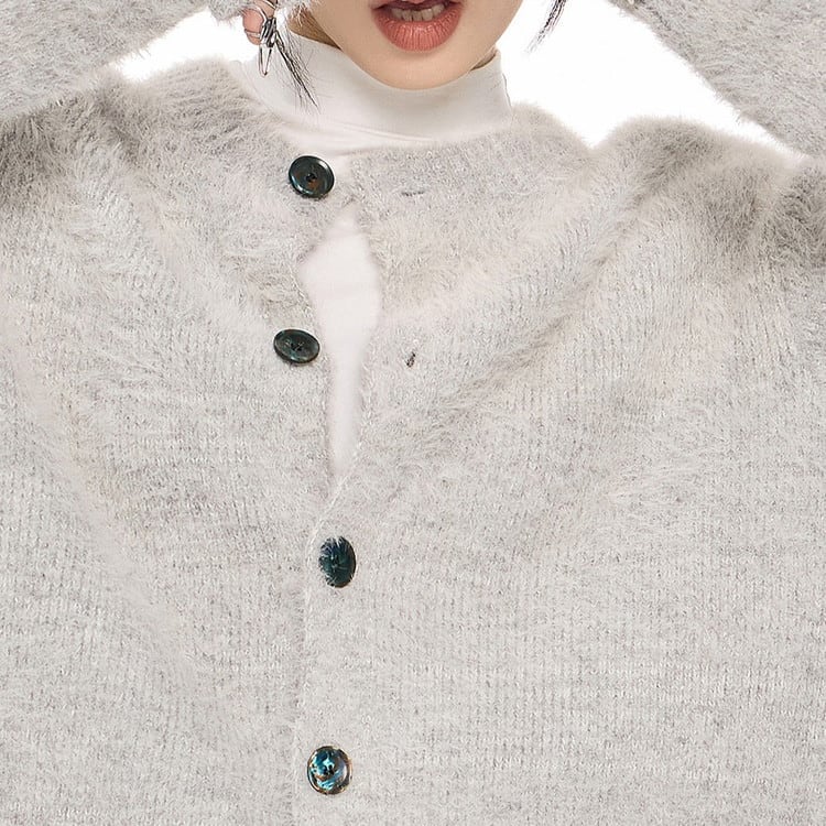 クルーネックシャギーニットカーディガン 3color [am03470]