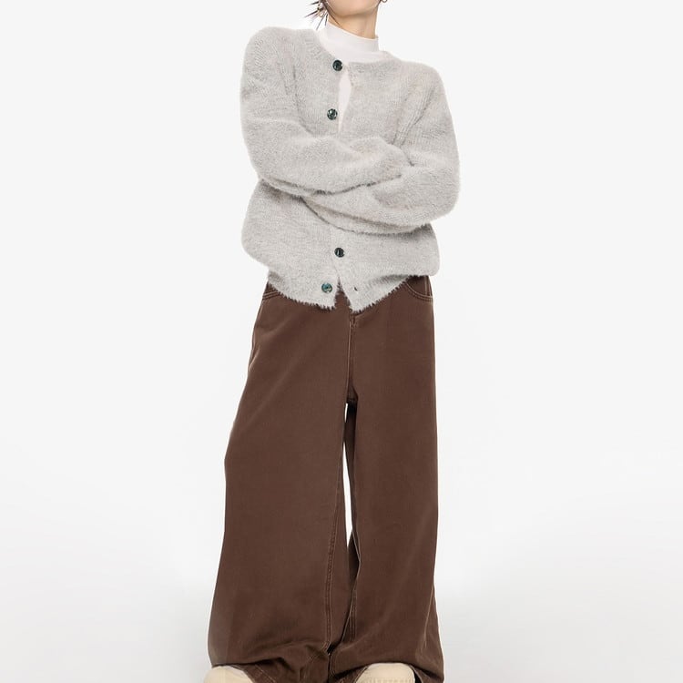 高級感たっぷりなクルーネックシャギーニットカーディガンです。