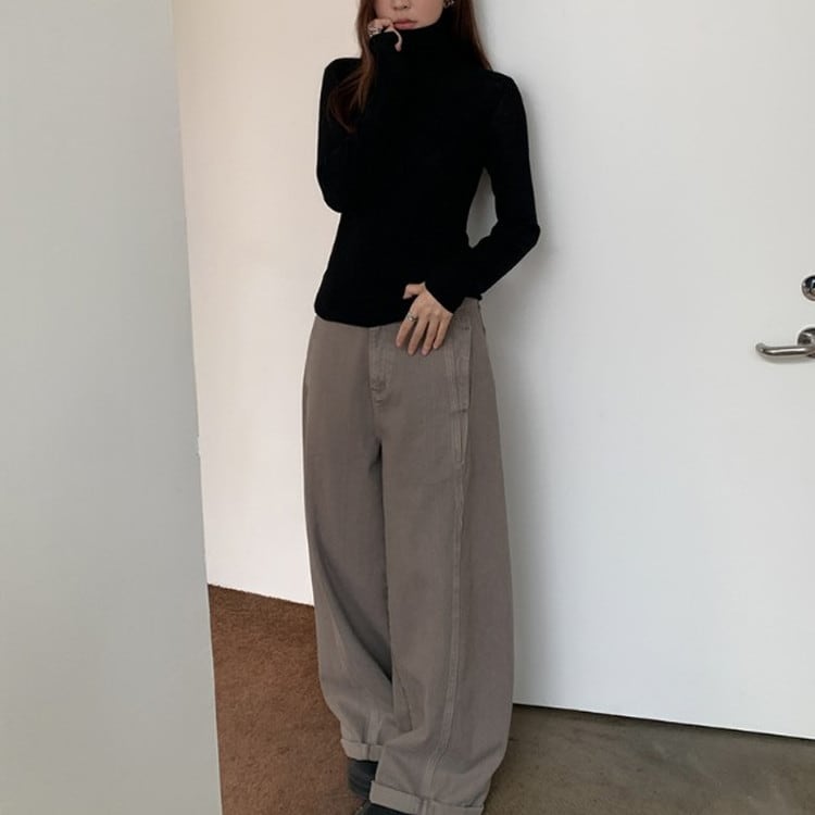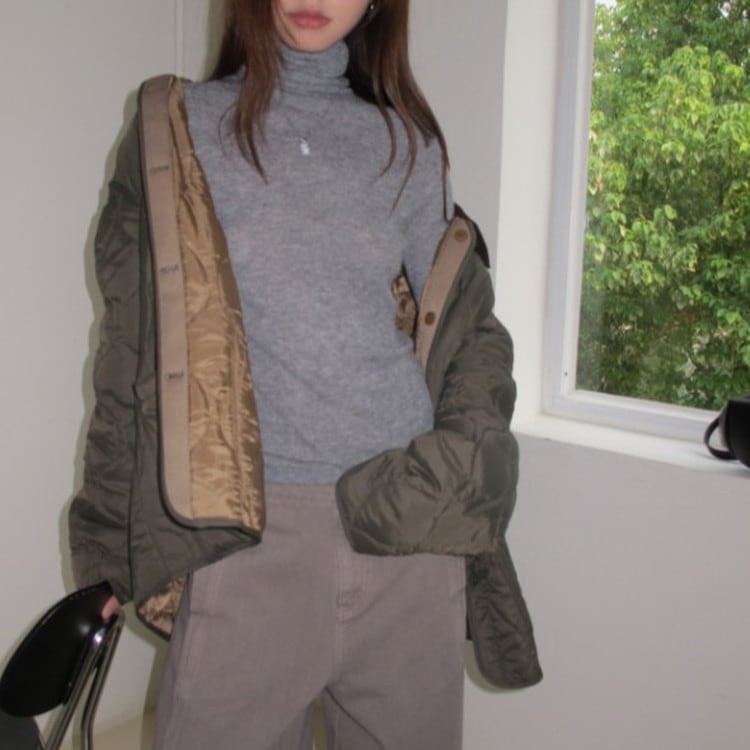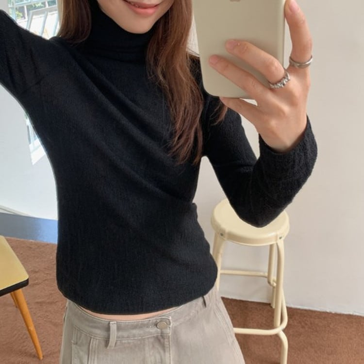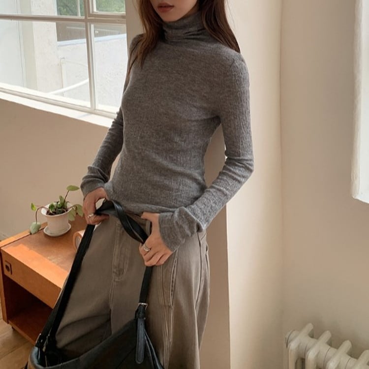 ウールブレンドスリムフィットハイネックニット 2color [am03472]