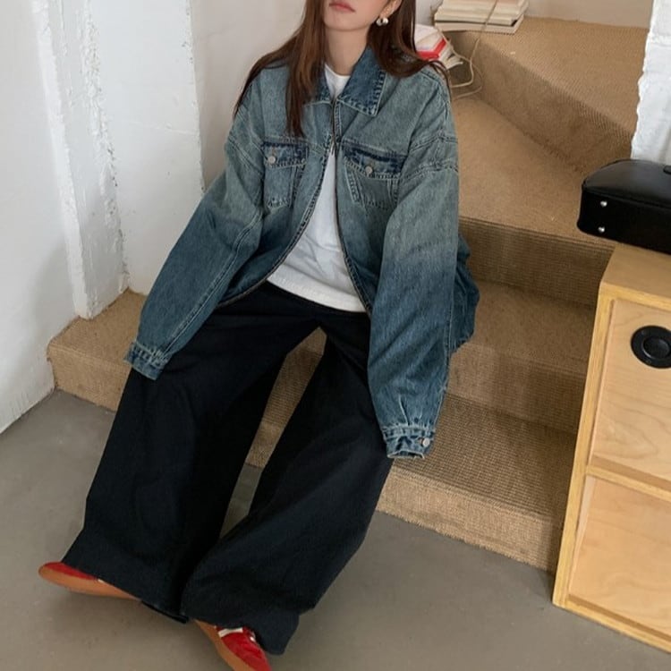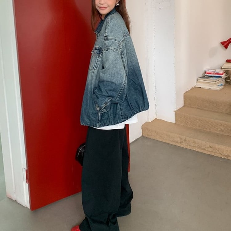 オーバーサイズジップアップグラデーションデニムジャケット [am03474]