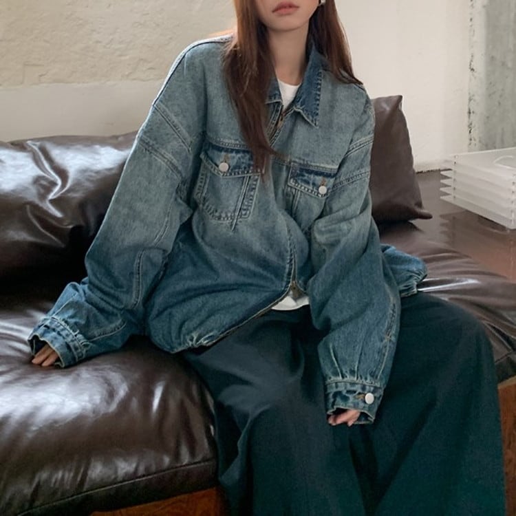 風合いのあるオーバーサイズジップアップグラデーションデニムジャケットです。