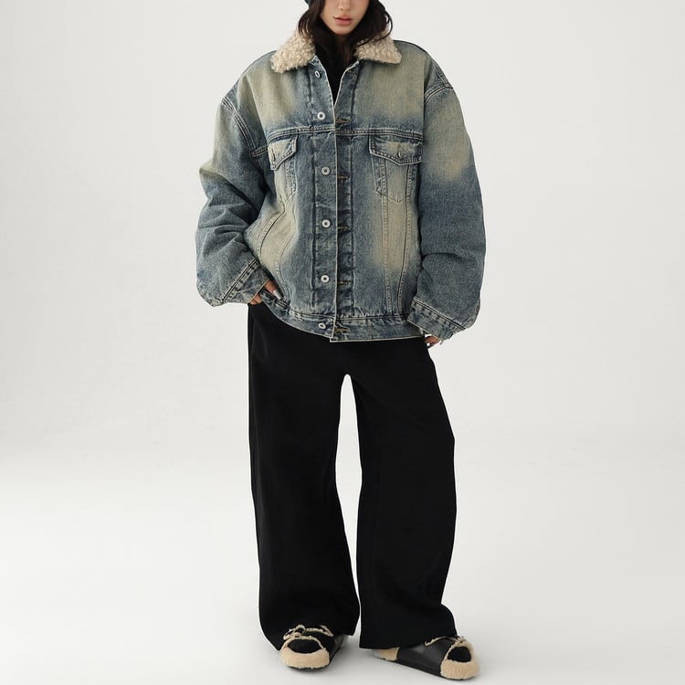 ヴィンテージライクなオーバーサイズファーカラーデニムジャケットです。