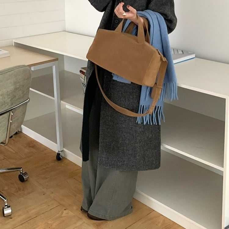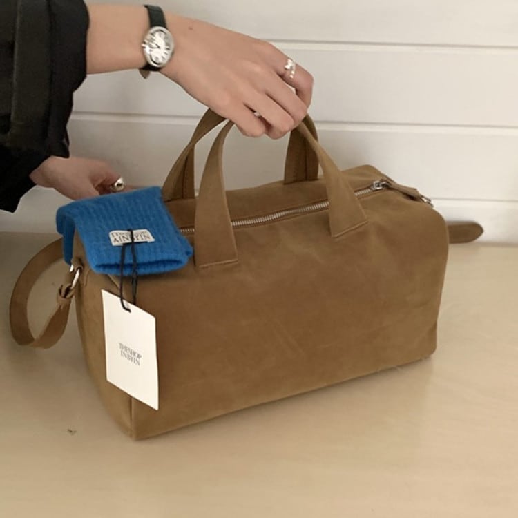 どんなスタイリングにも映えるスウェードタッチ2WAYボストンバッグです。