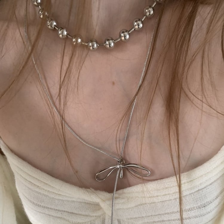 顔周りを華やかにしてくれるシルバー2スタイルネックレスです。
