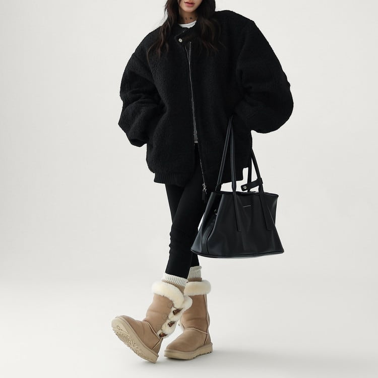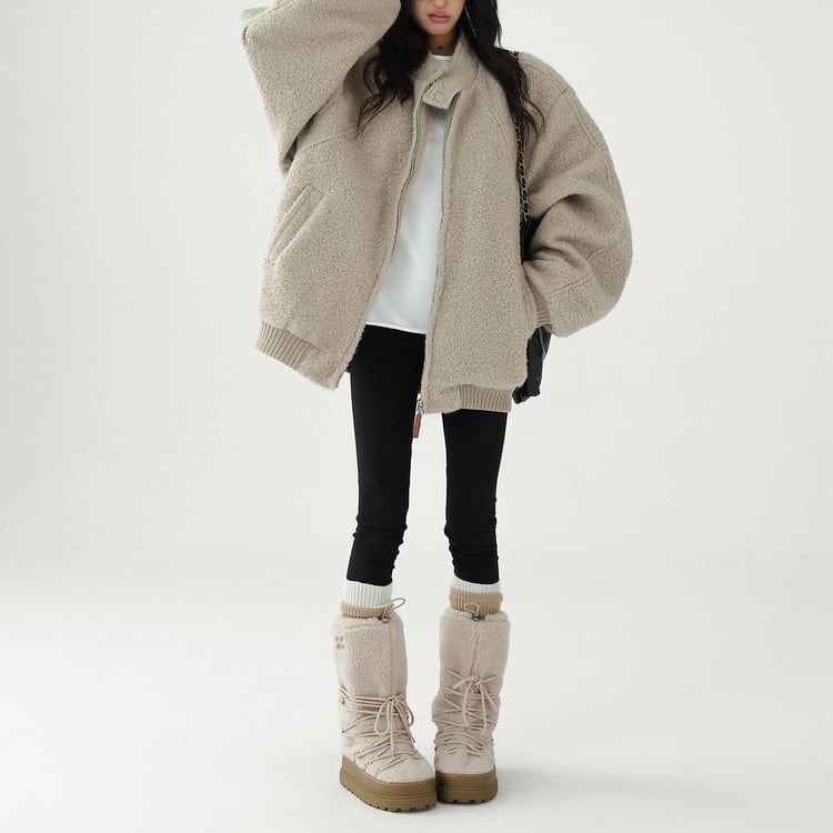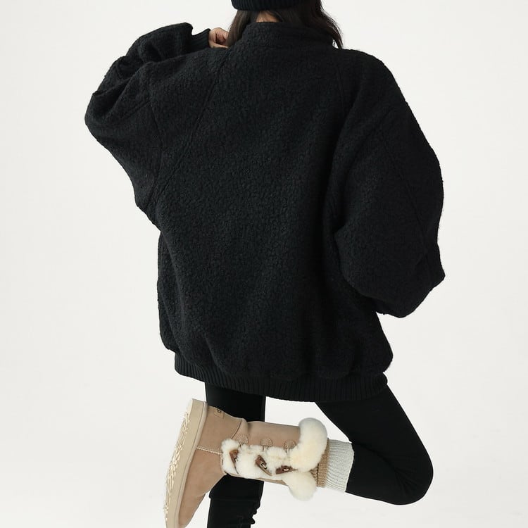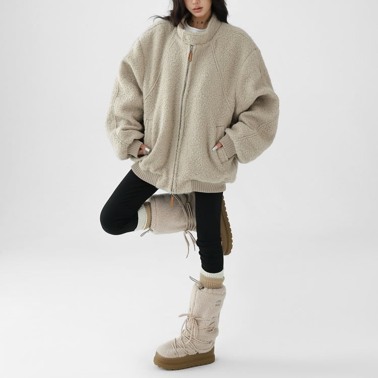 もこもこのボアとスタンドカラーデザインなので暖かさも◎