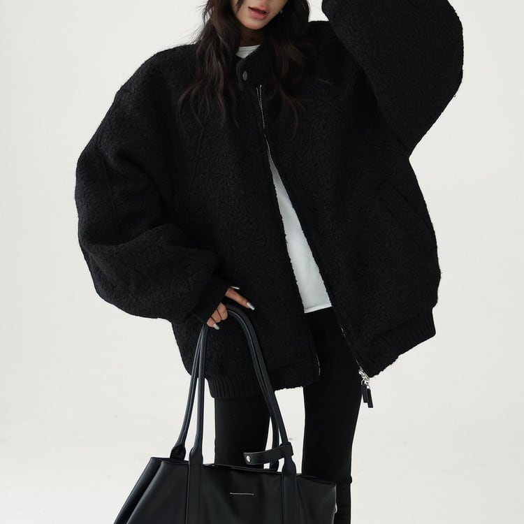 オーバーサイズスタンドカラーダブルジップブルゾン 2color [am03484]