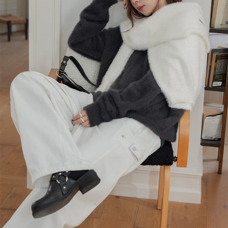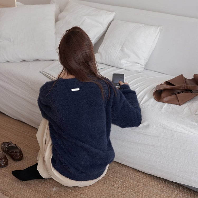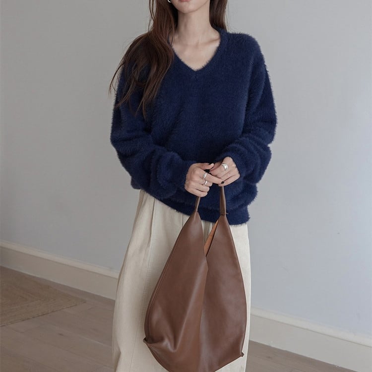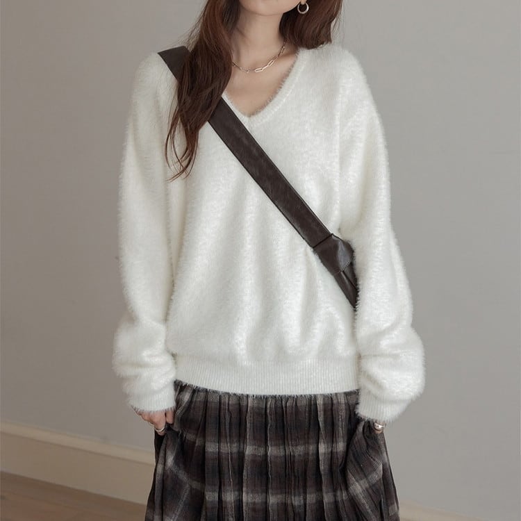 Vネックシャギーニットプルオーバー 3color [am03486]