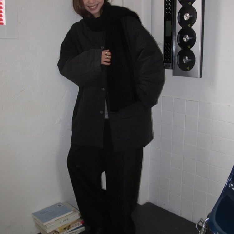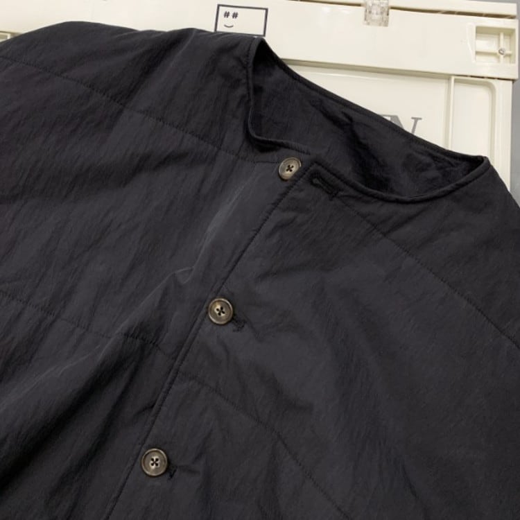 リラックス感のあるオーバーサイズノーカラーキルティングジャケットです。