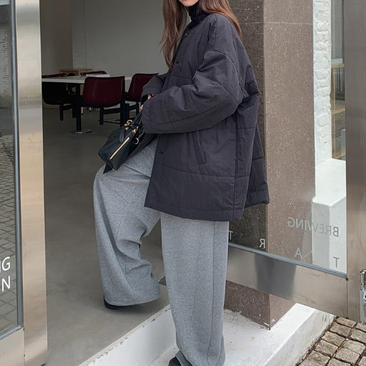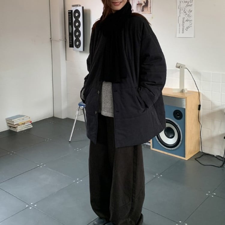オーバーサイズノーカラーキルティングジャケット [am03493]