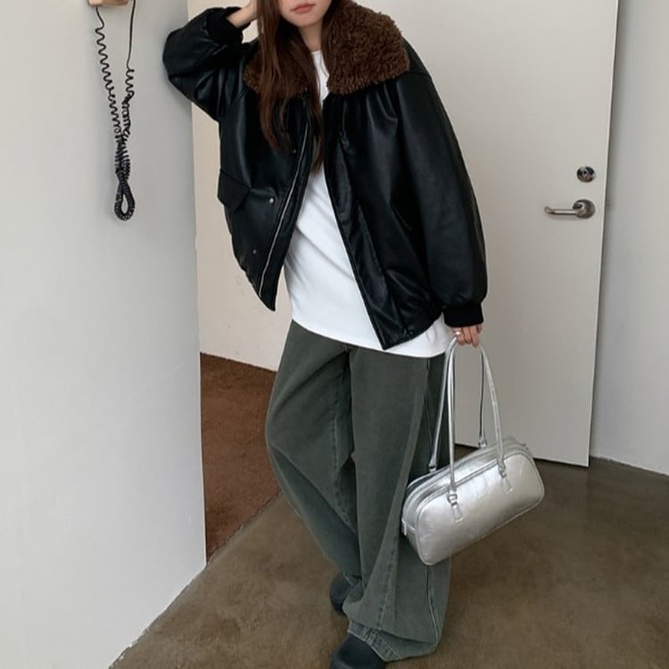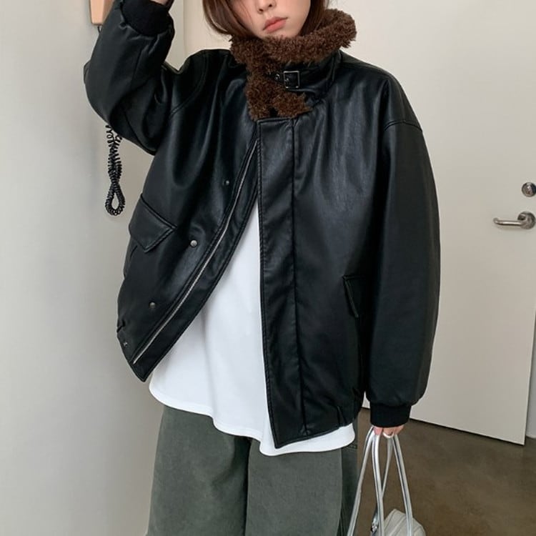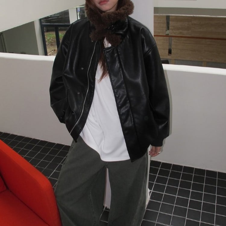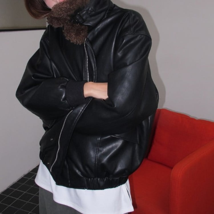 ボアカラーエコレザージャケット [am03494]