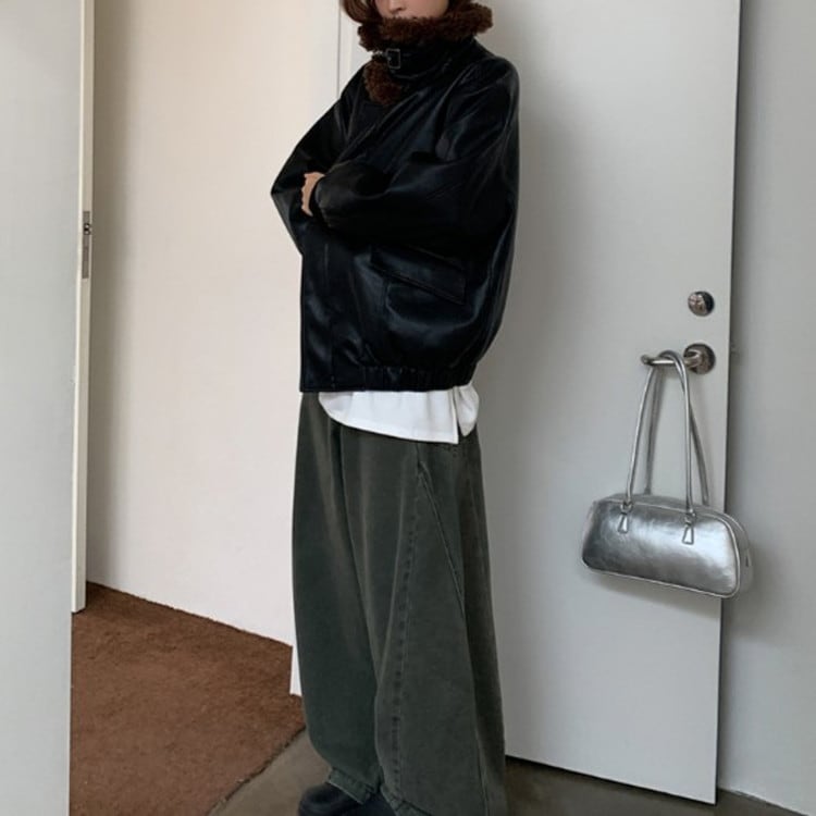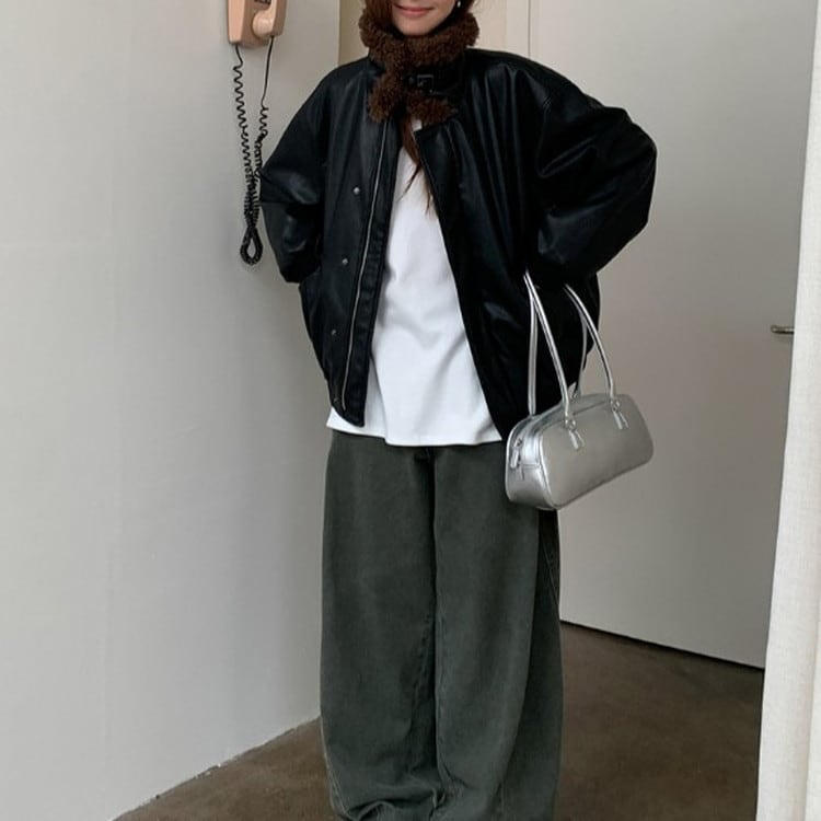 高見えするボアカラーエコレザージャケットです。