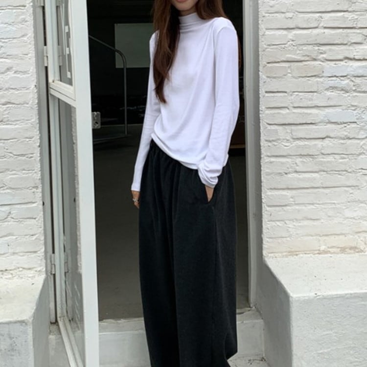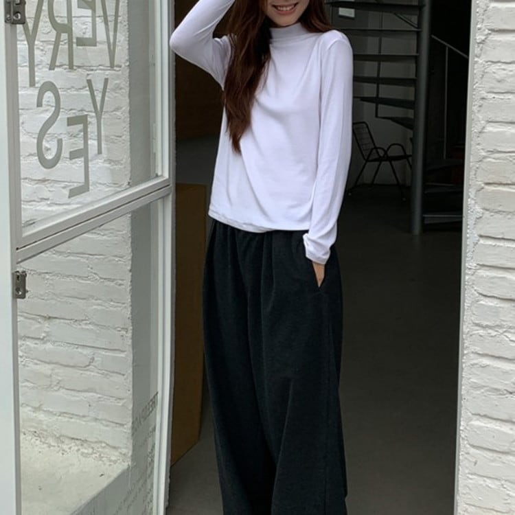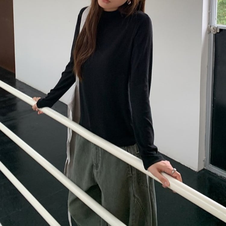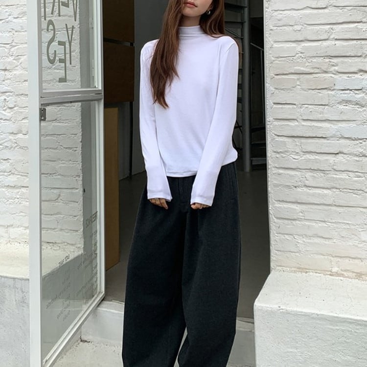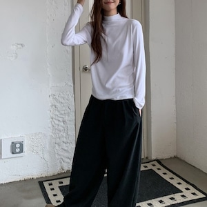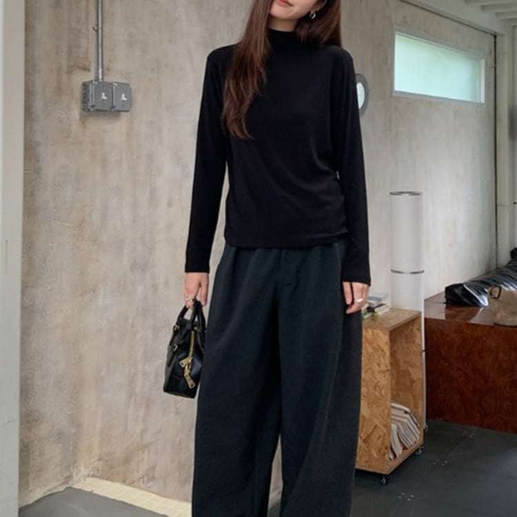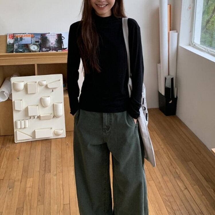 着回し力抜群のセミハイネックソフトロングTシャツです。