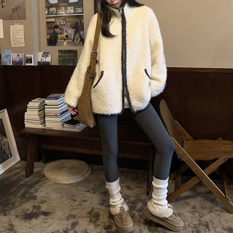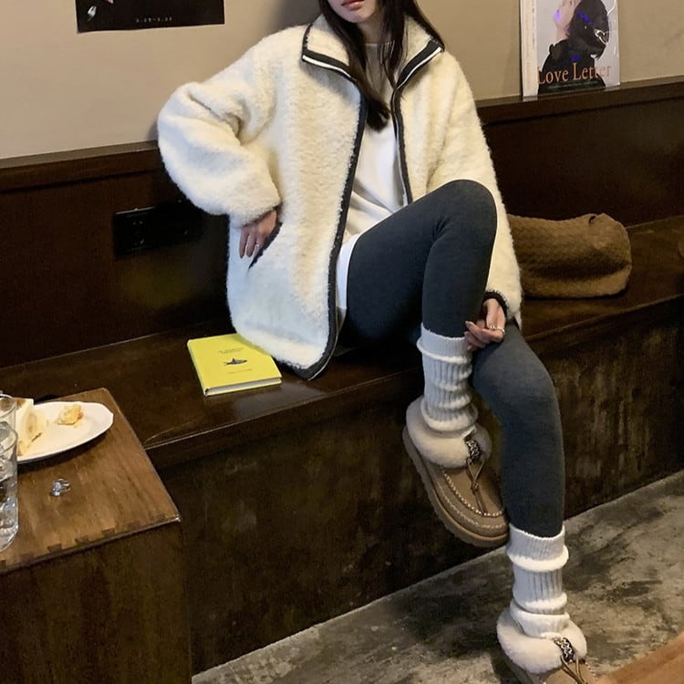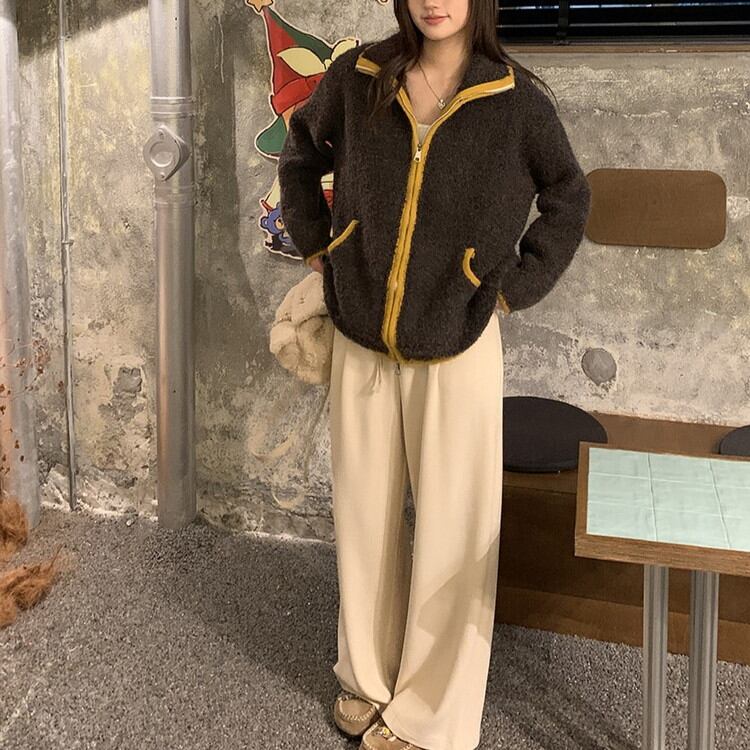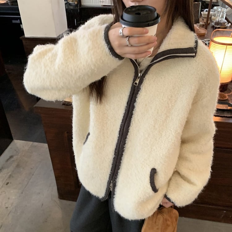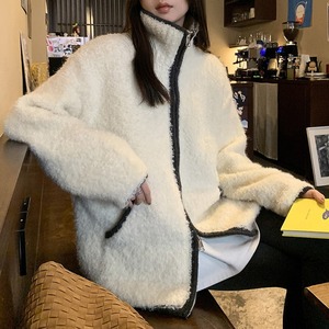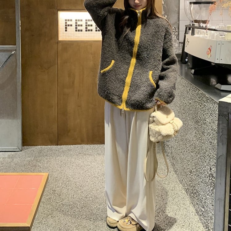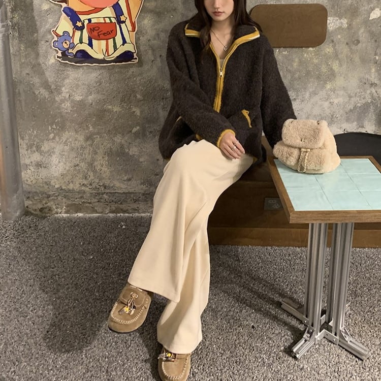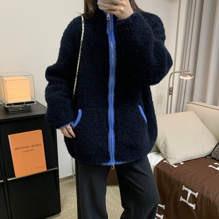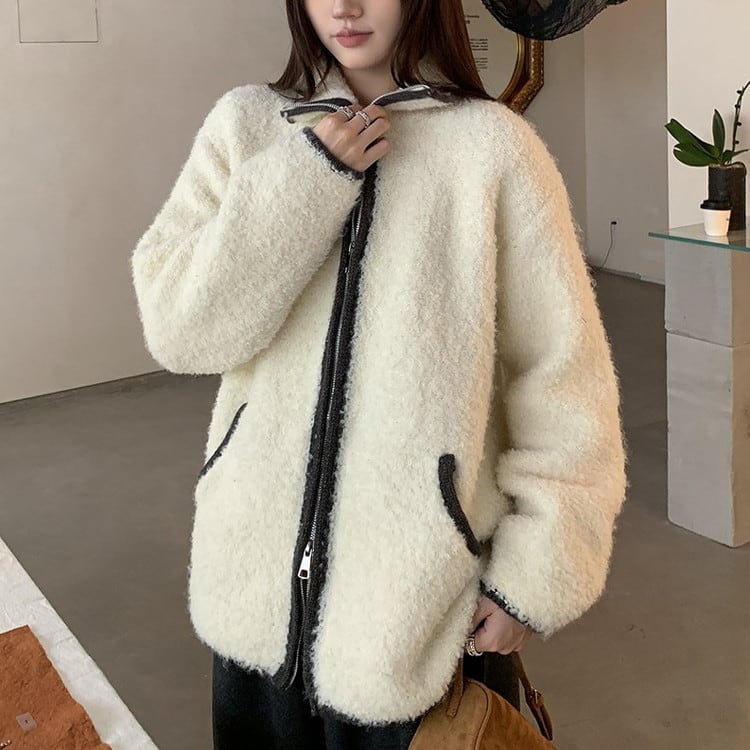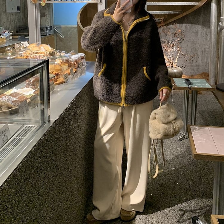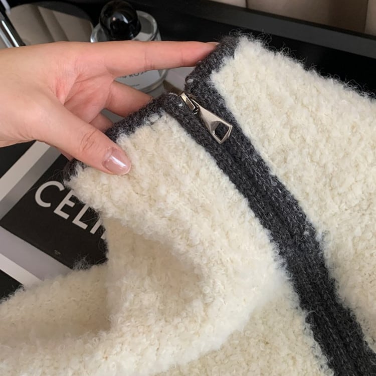 寒い季節にぴったりのパイピングダブルジップループニットです。
