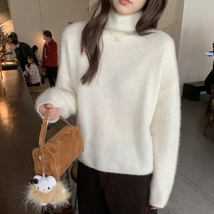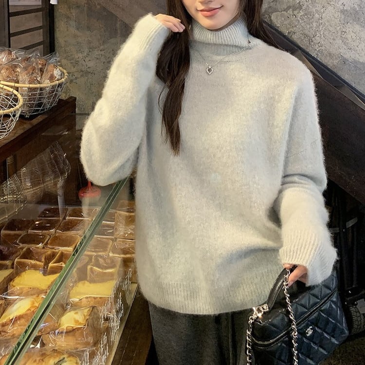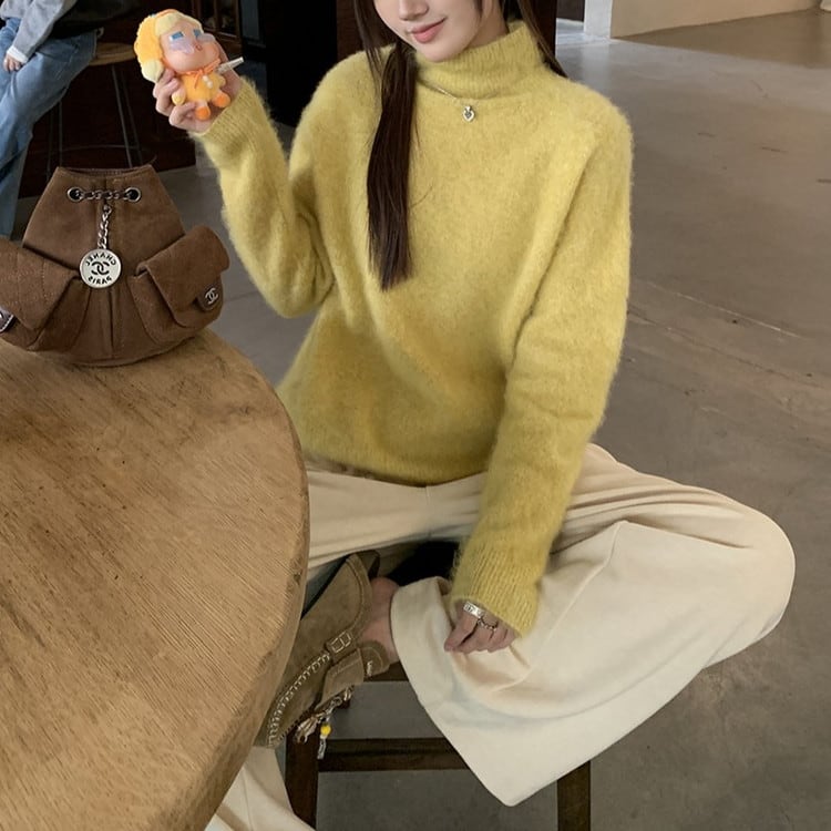 カシミアブレンドハイネックカラーニット 4color [am03503]
