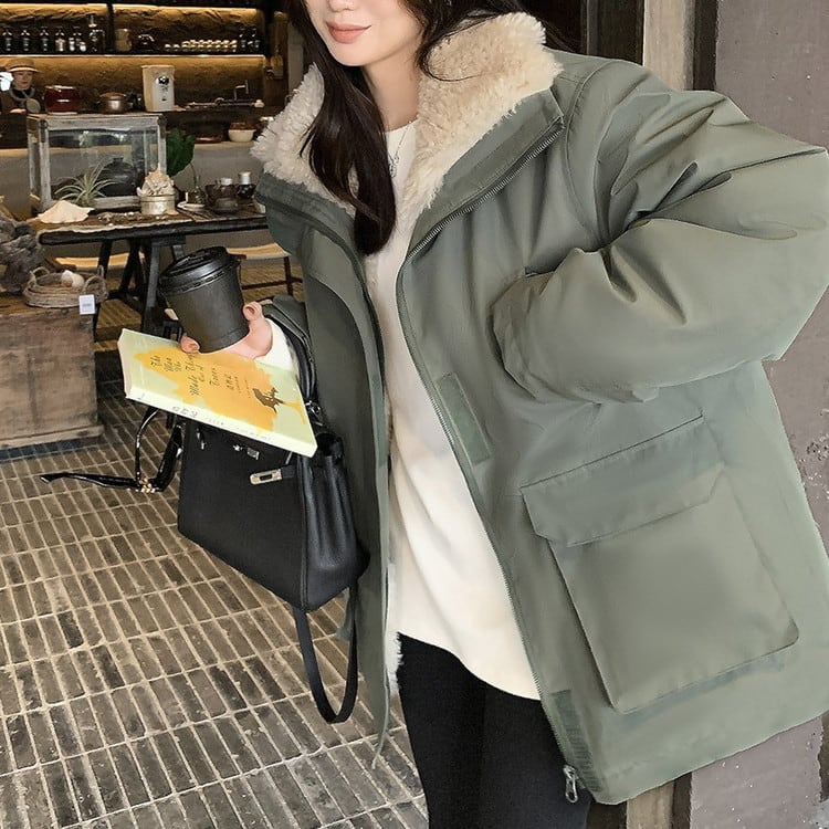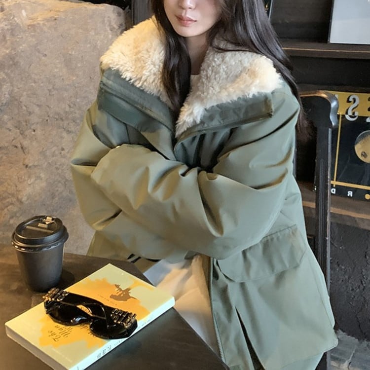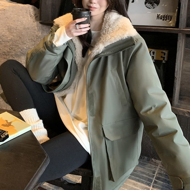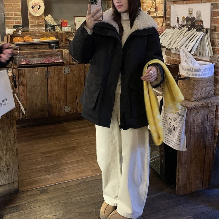 袖口を折り返すとボアが覗き、さり気なく可愛いアクセントになるアイテムです。