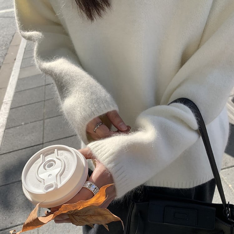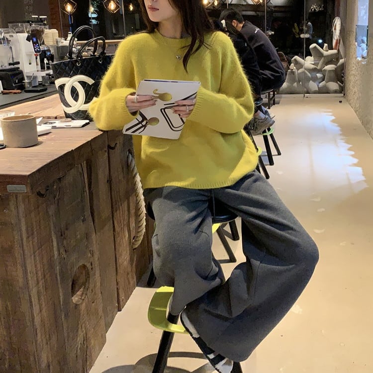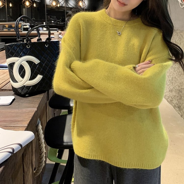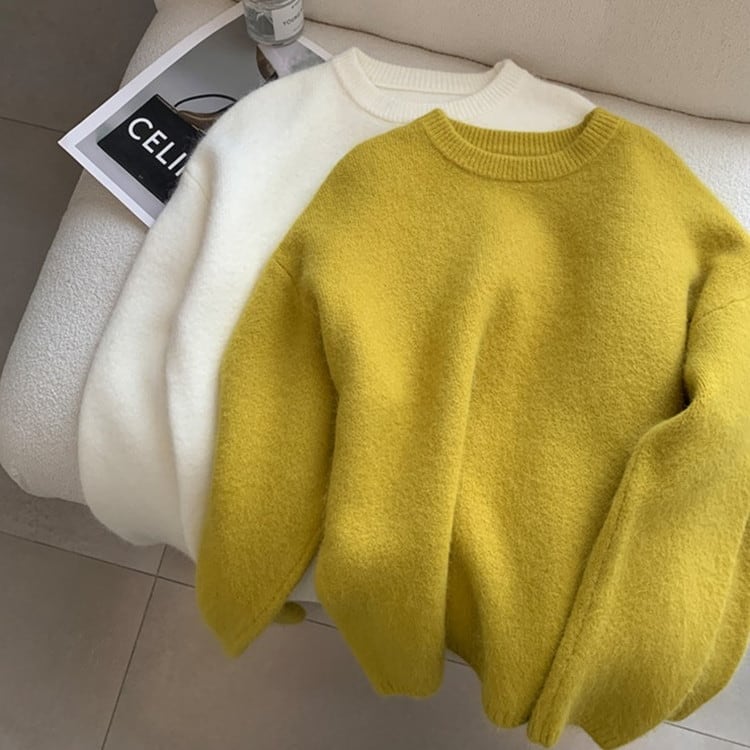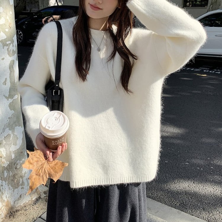 クルーネックソフトニットプルオーバー 2color [am03507]
