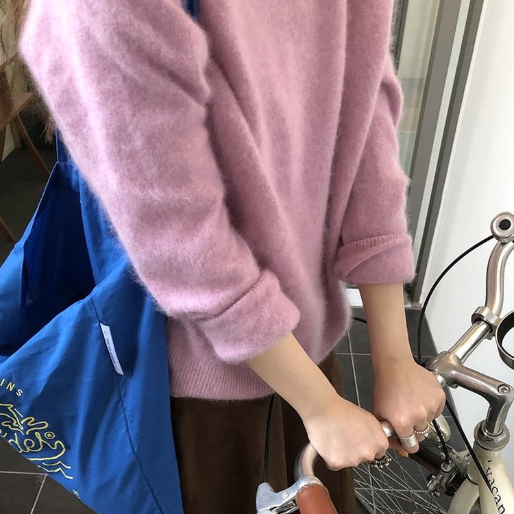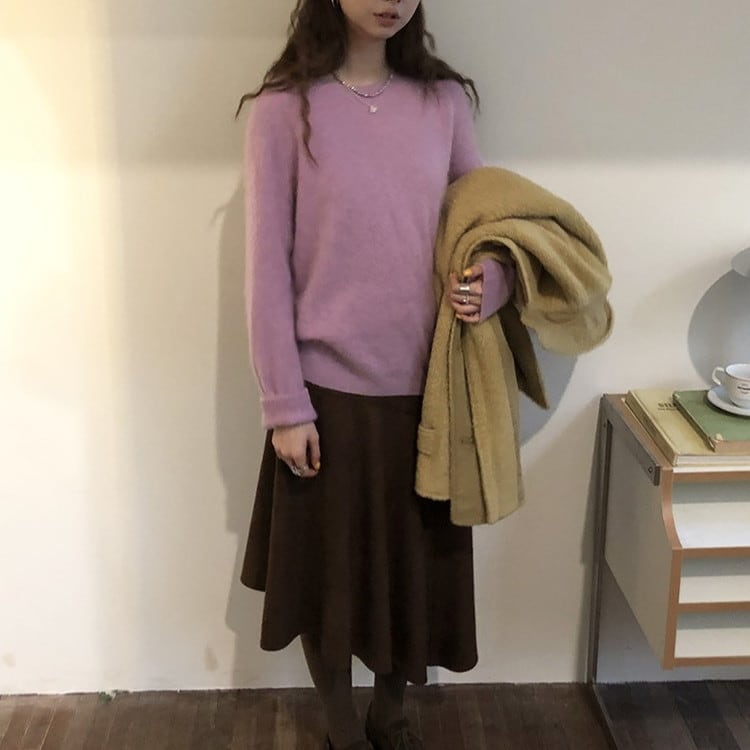 クルーネックソフトニットプルオーバー 2color [am03509]