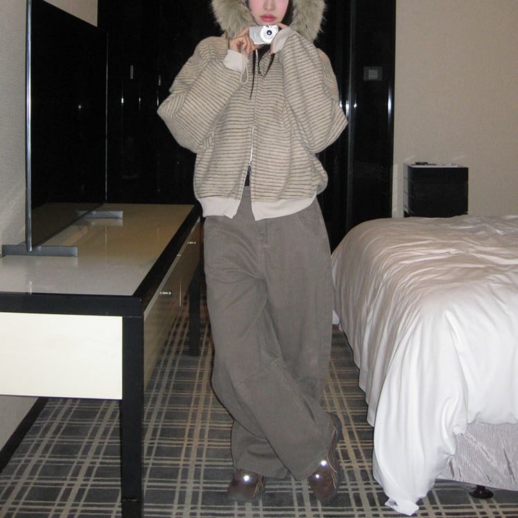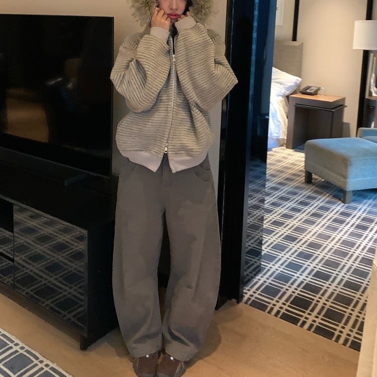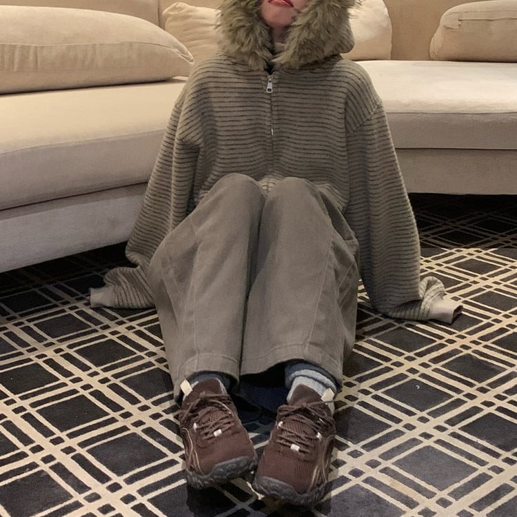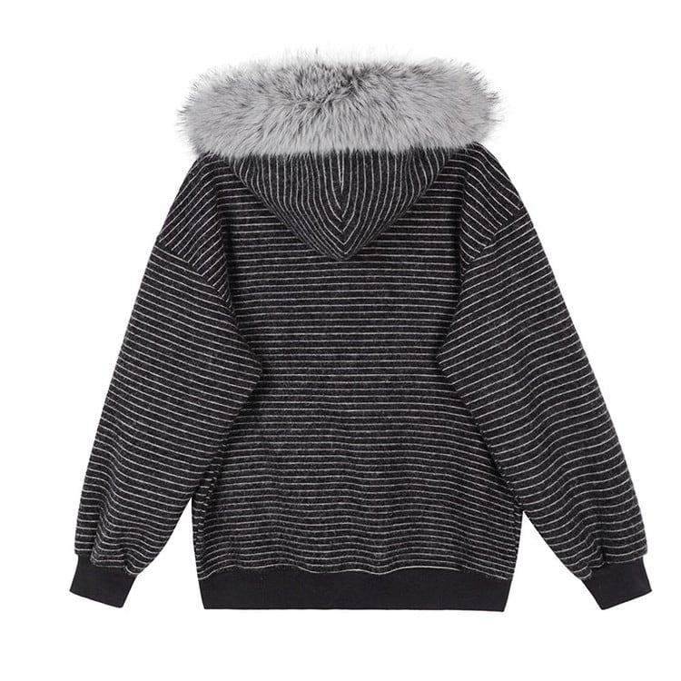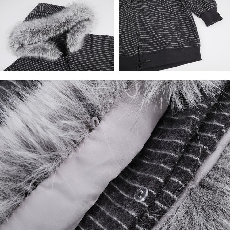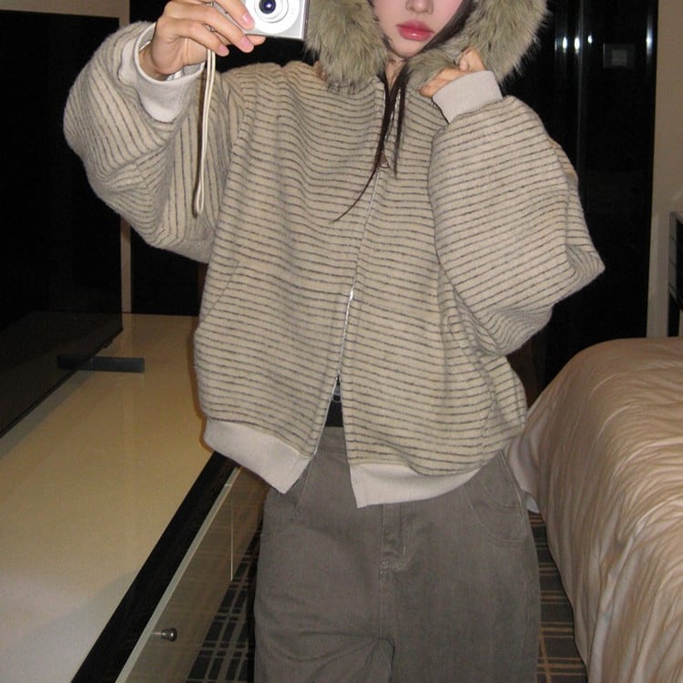 取り外し可能なファーと起毛感のあるボーダー生地が魅力的◎