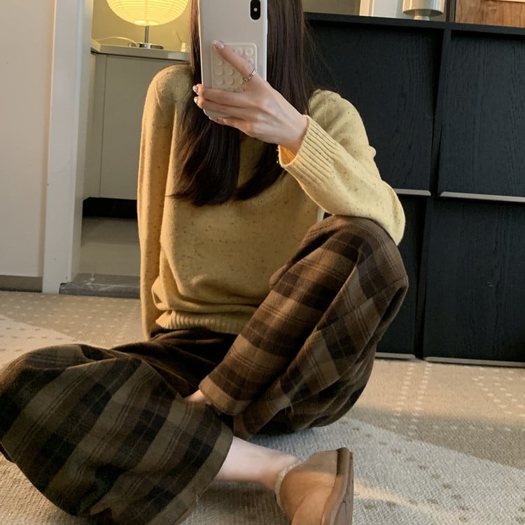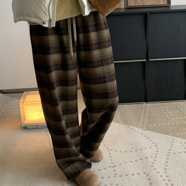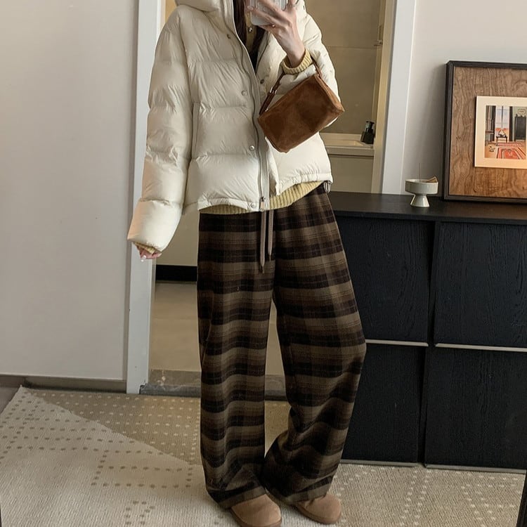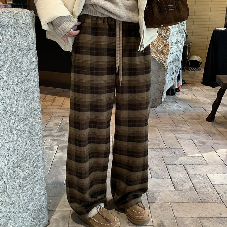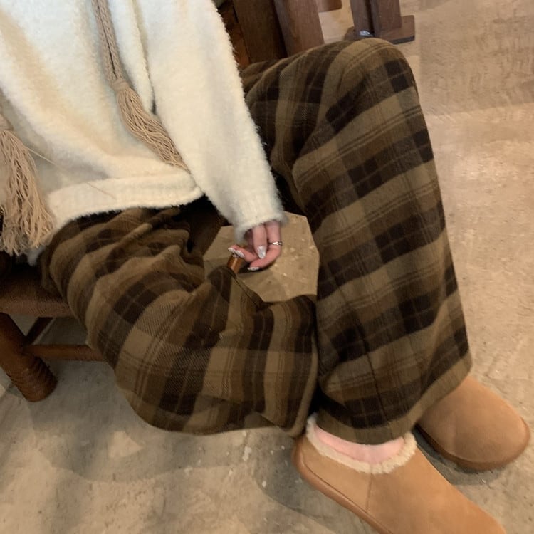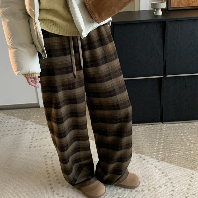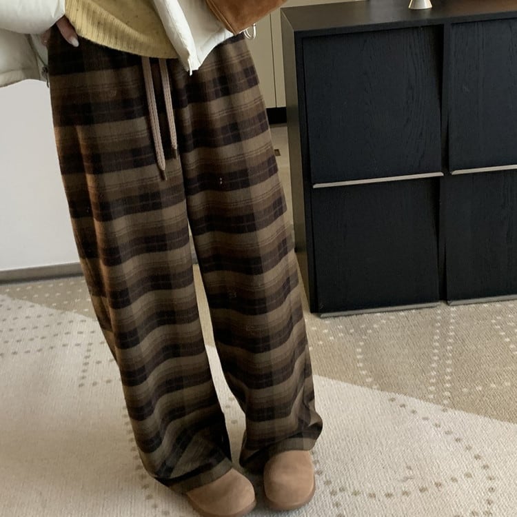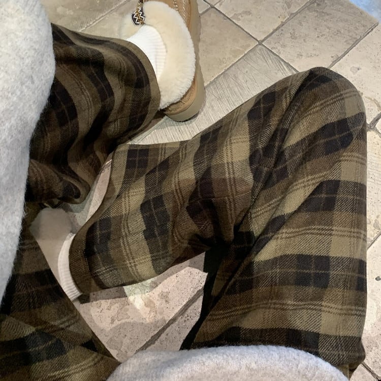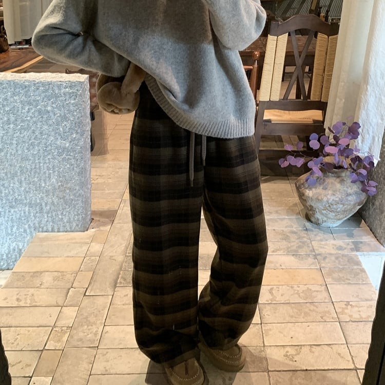 シーズンムード高まるブラッシュドチェックワイドパンツです。