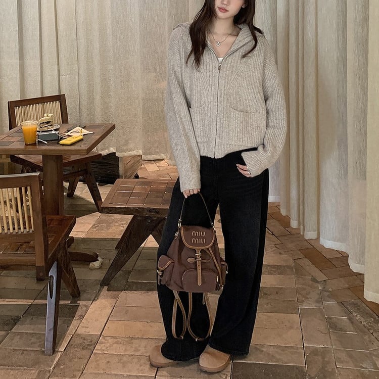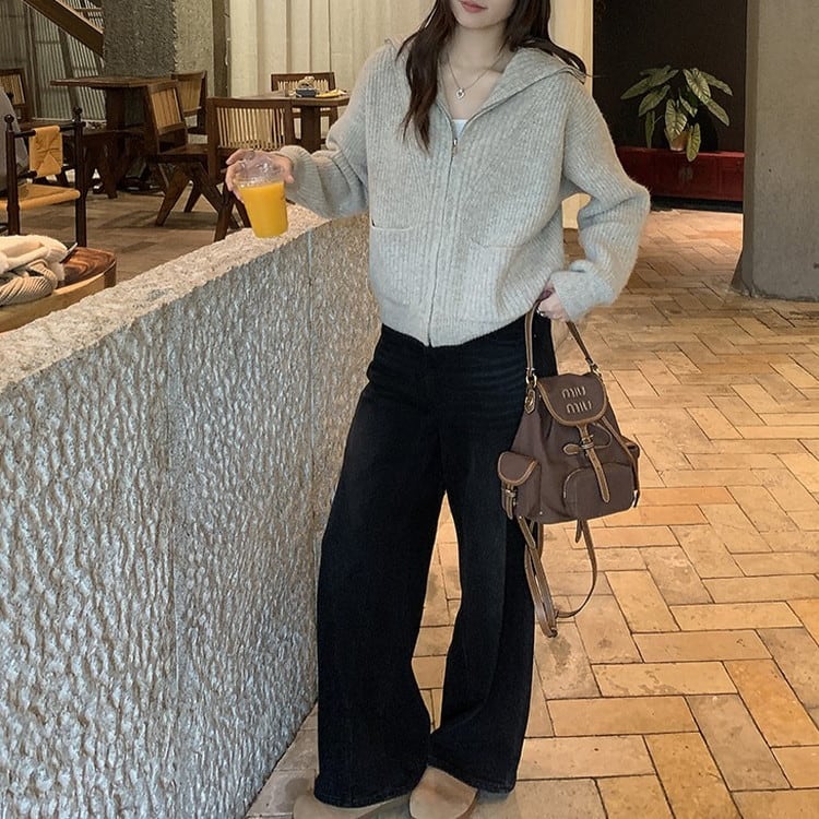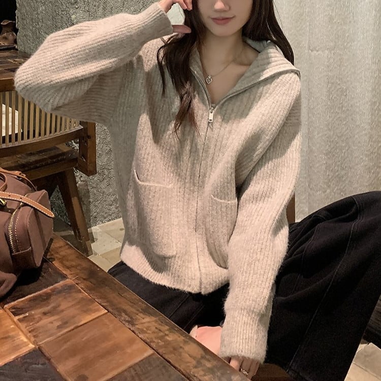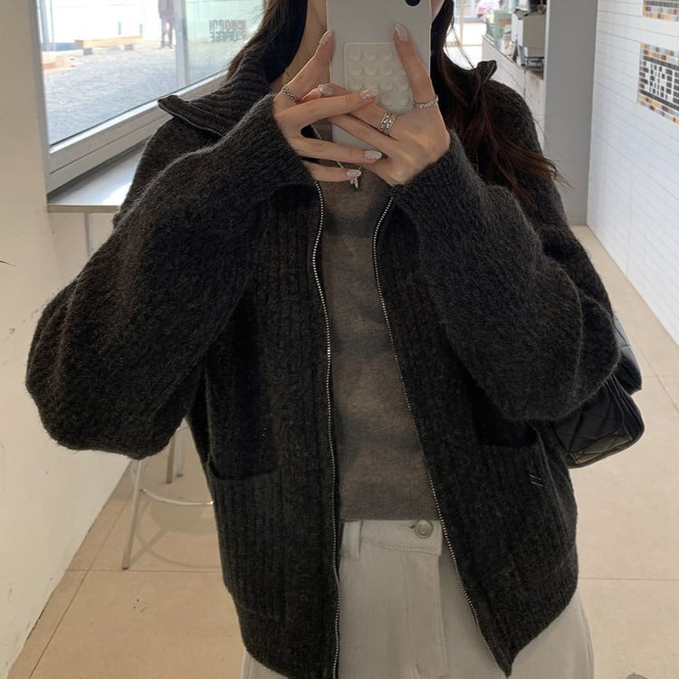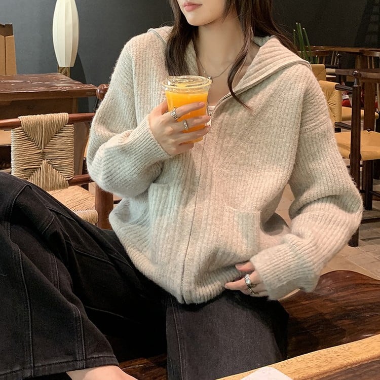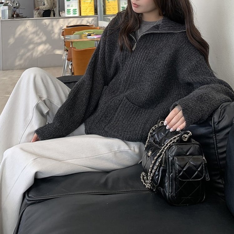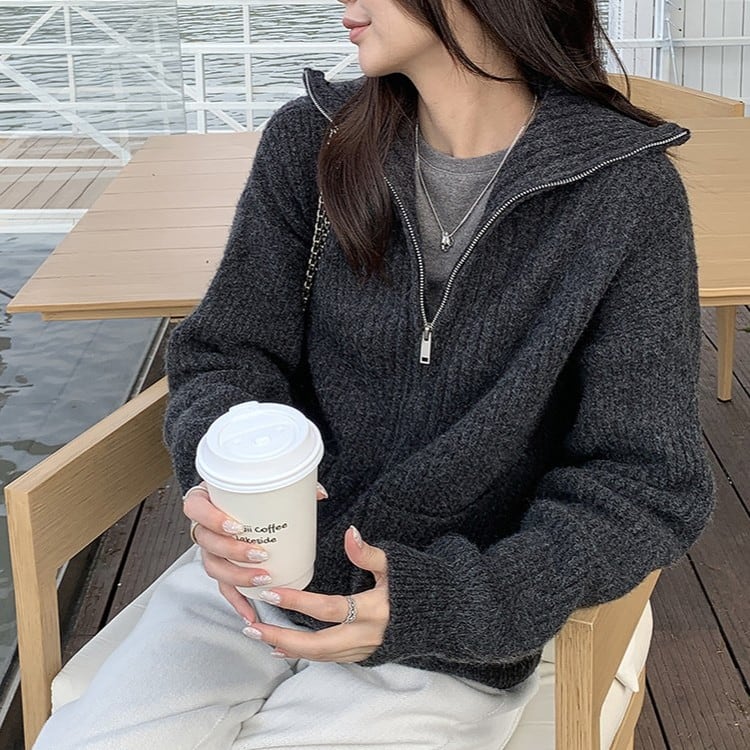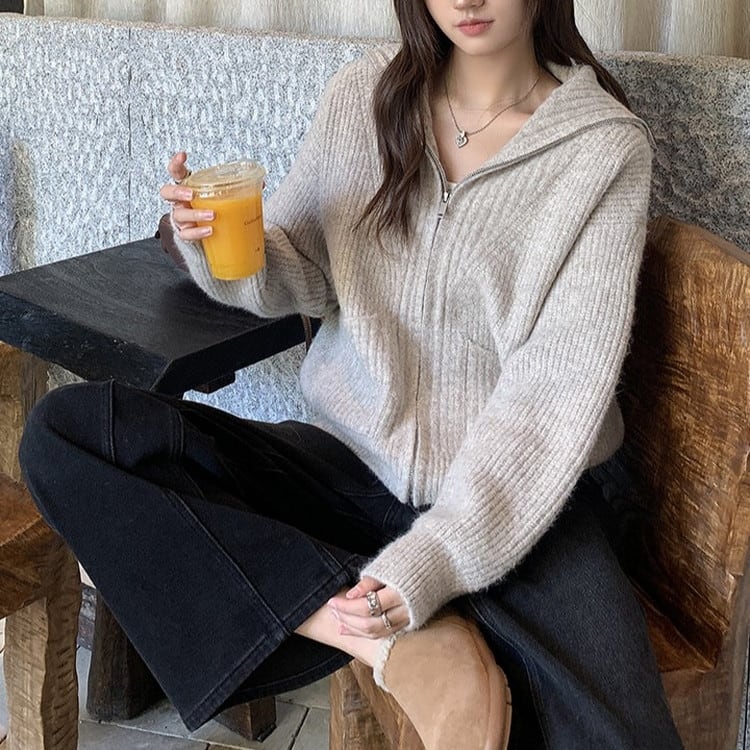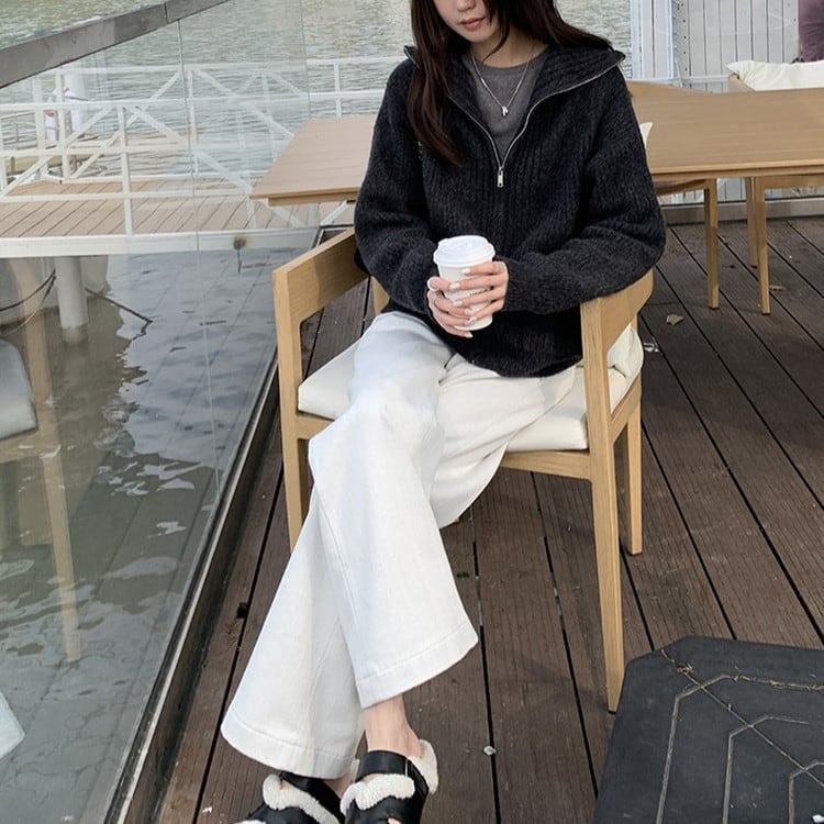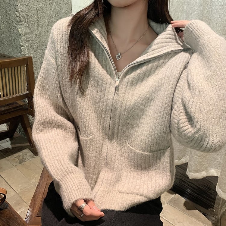 ハイカラーフルジップニット 2color [am03521]