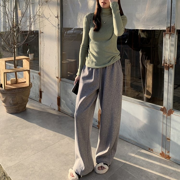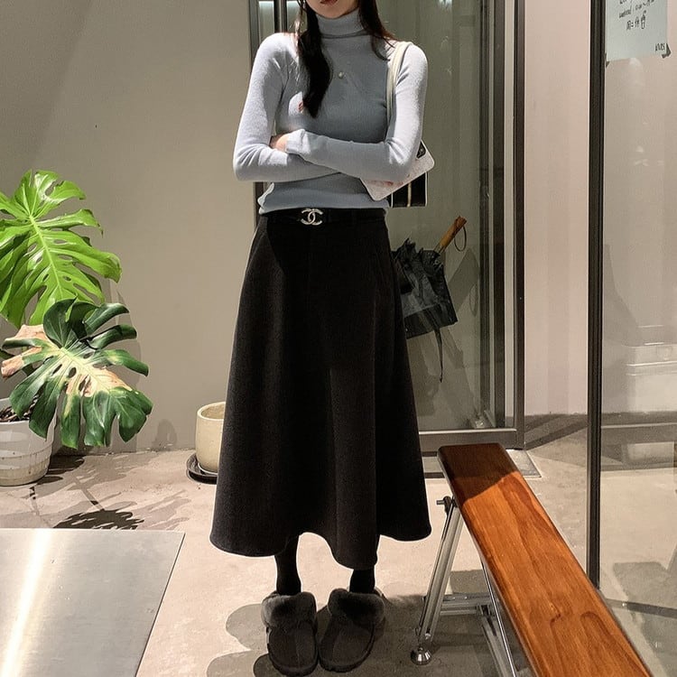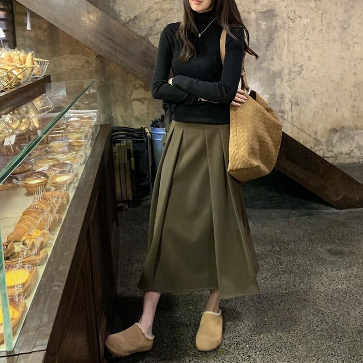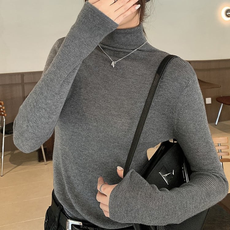 着回し力抜群のスリムフィットハイネックリブニットです。