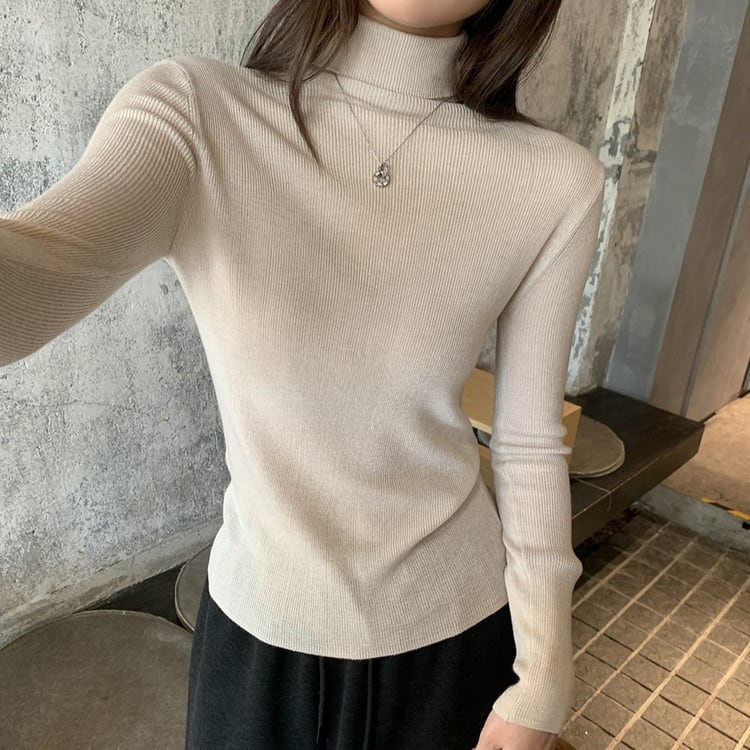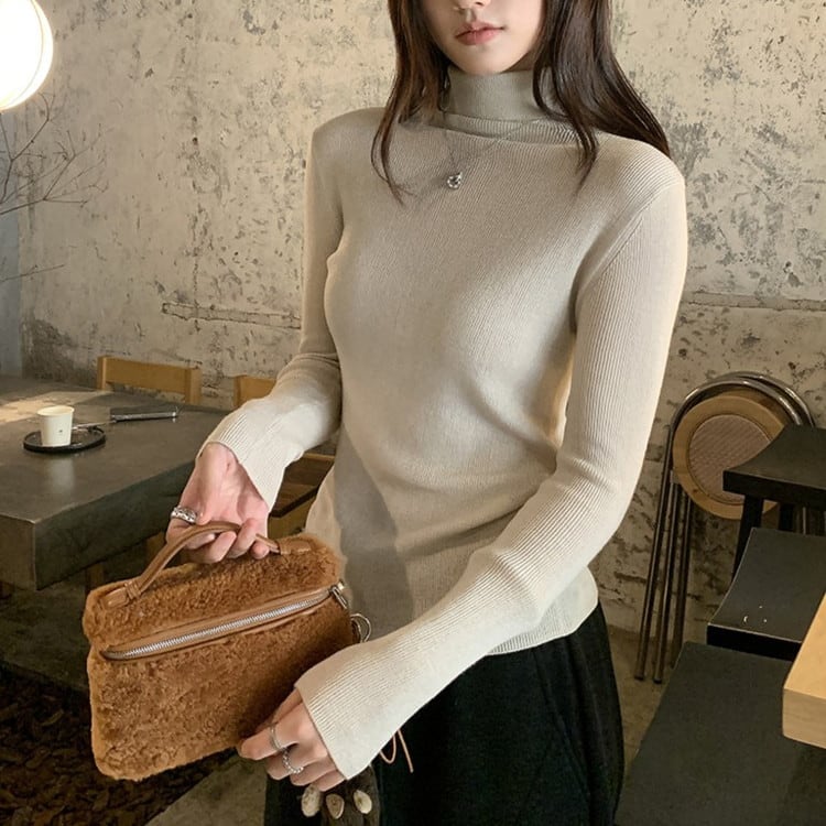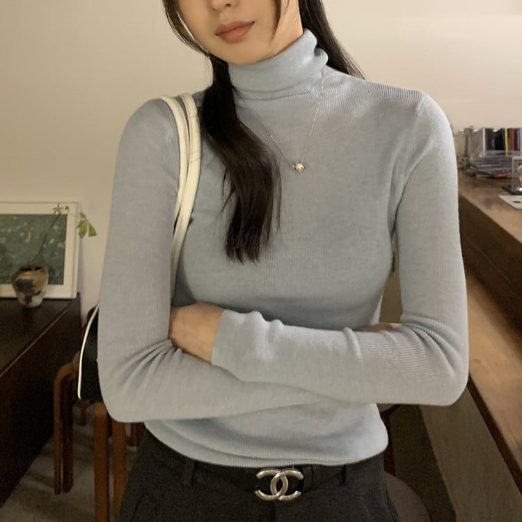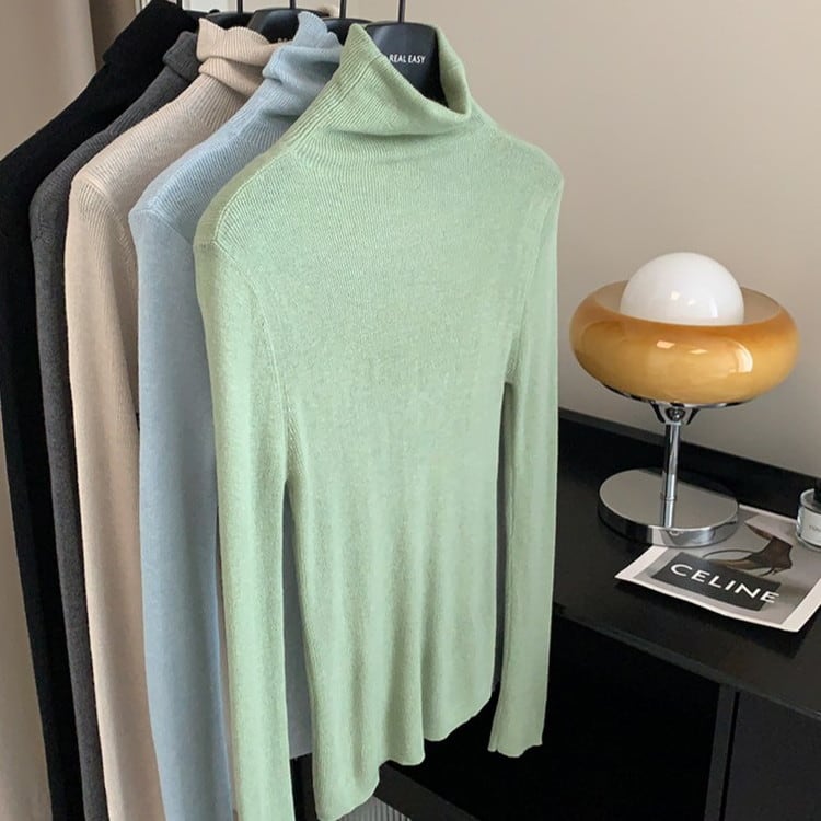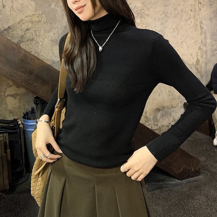 スリムフィットハイネックリブニット 5color [am03524]
