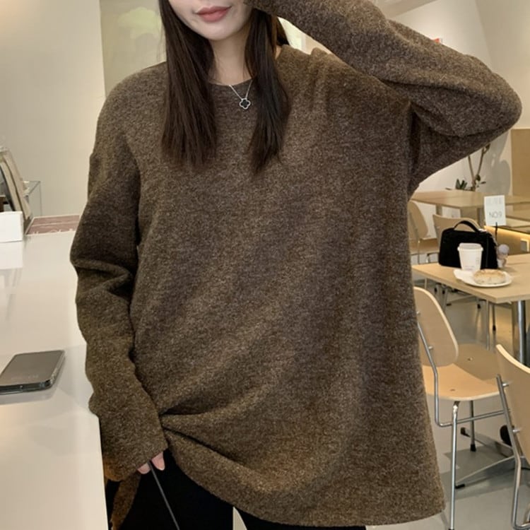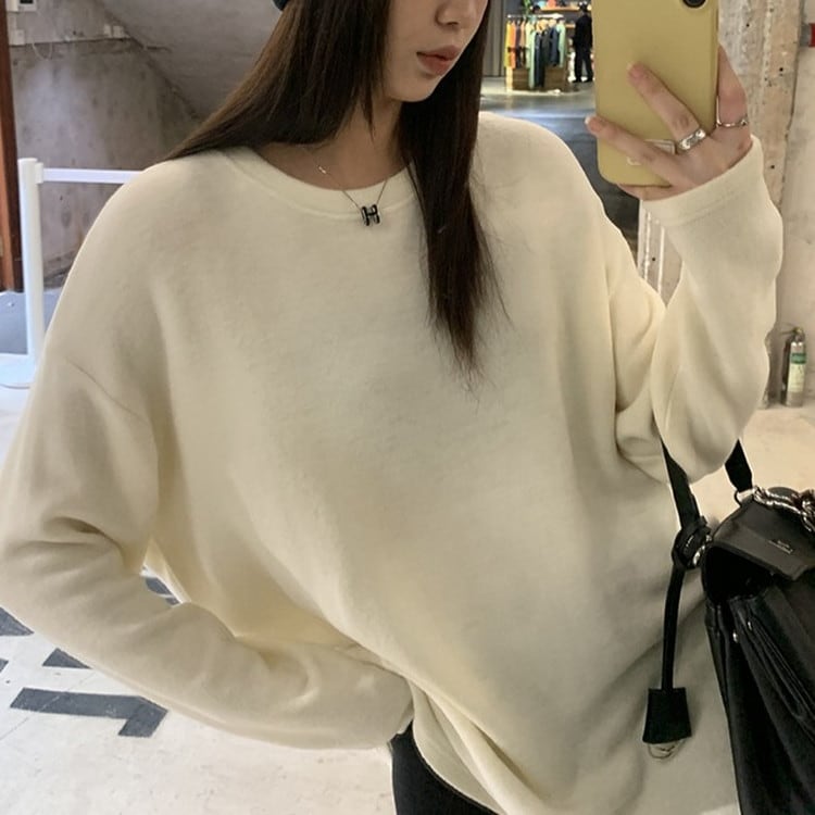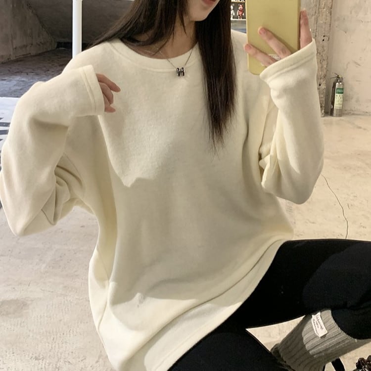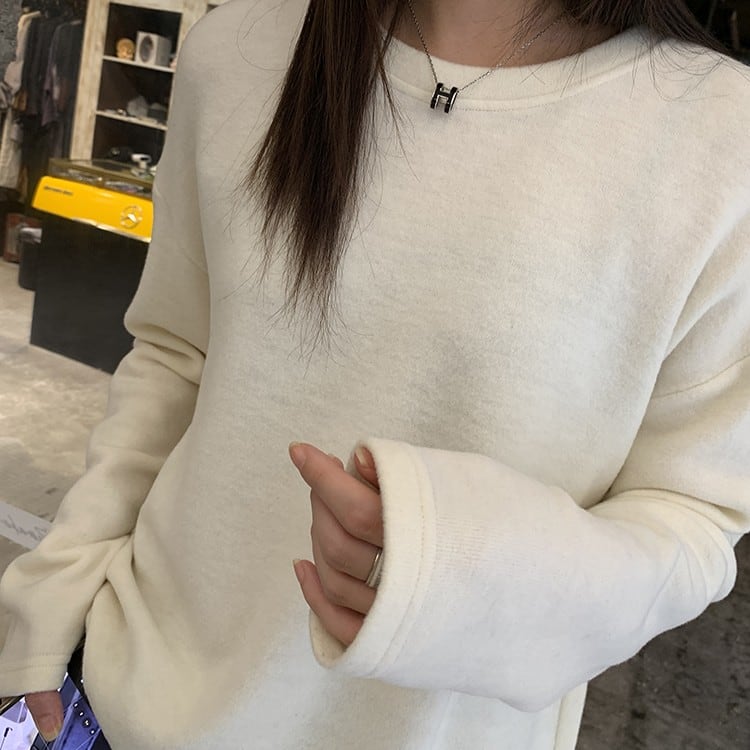 シンプルで合わせやすいクルーネックフリースロングTシャツです。