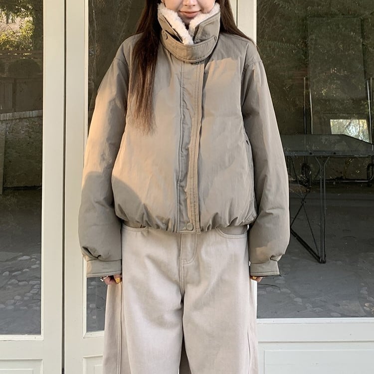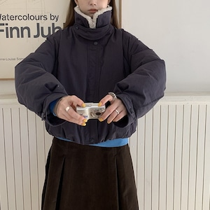 襟は立ててスタンドカラーとしても着こなせ、暖かさもばっちりのアイテムです。