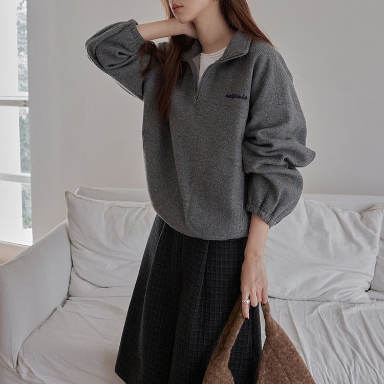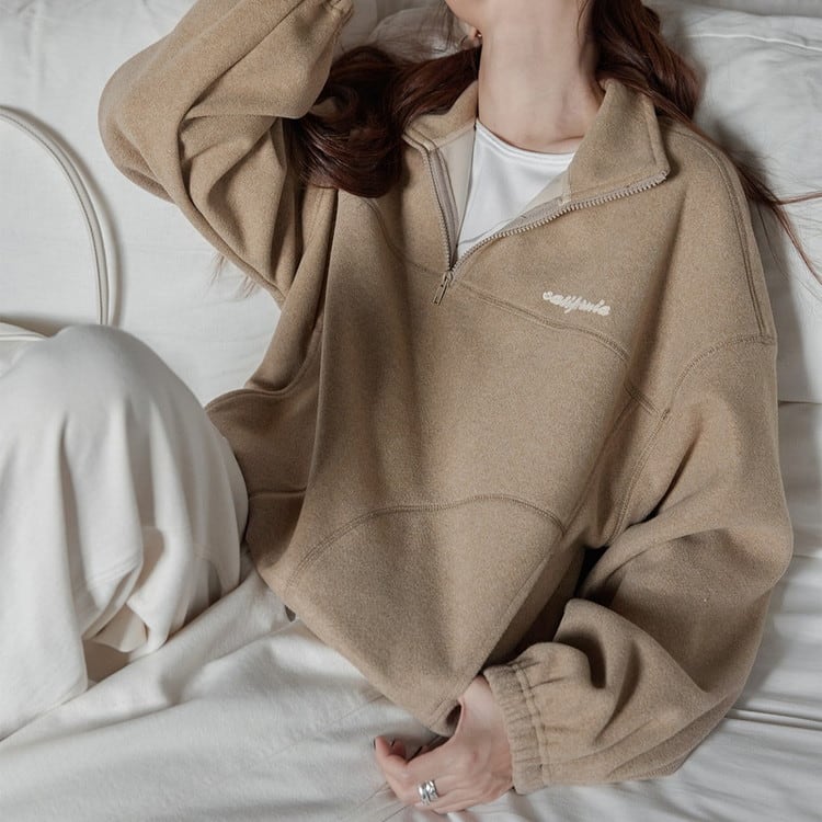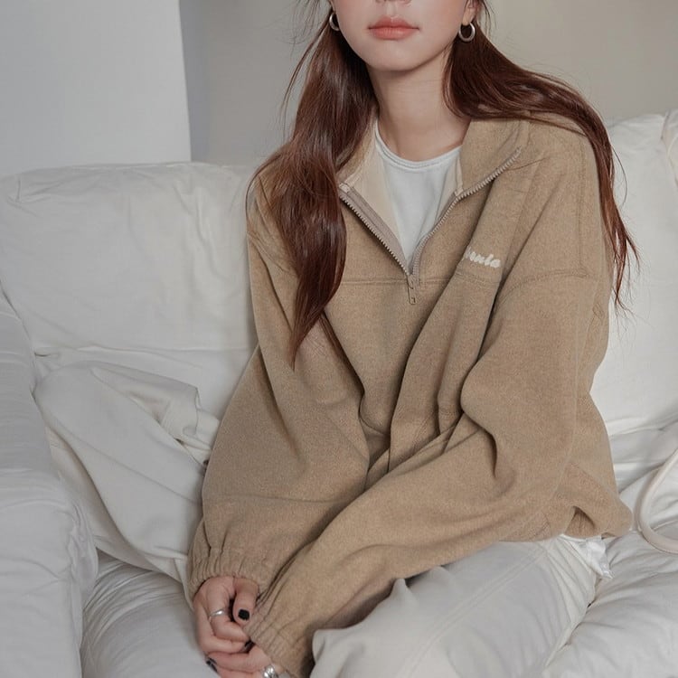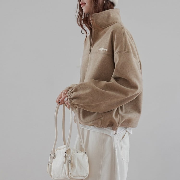 ジップを閉めてスタンドカラーとしても、少し深めに開けてインナーとのレイヤードも楽しめるアイテムです。