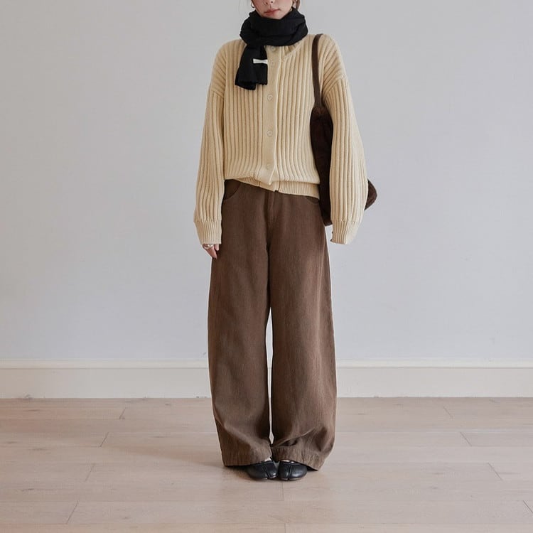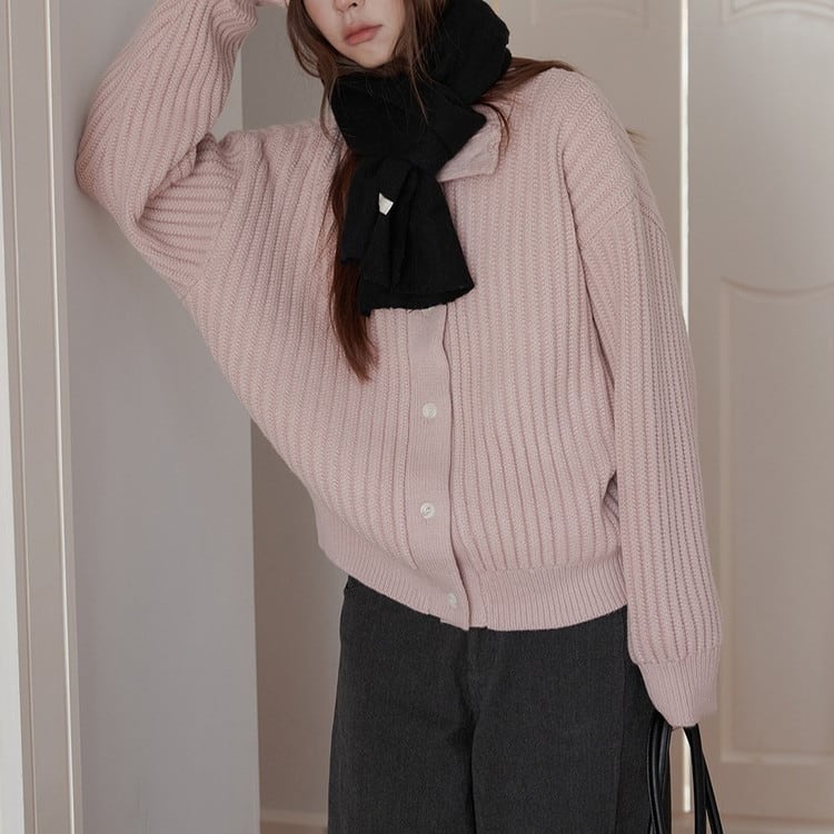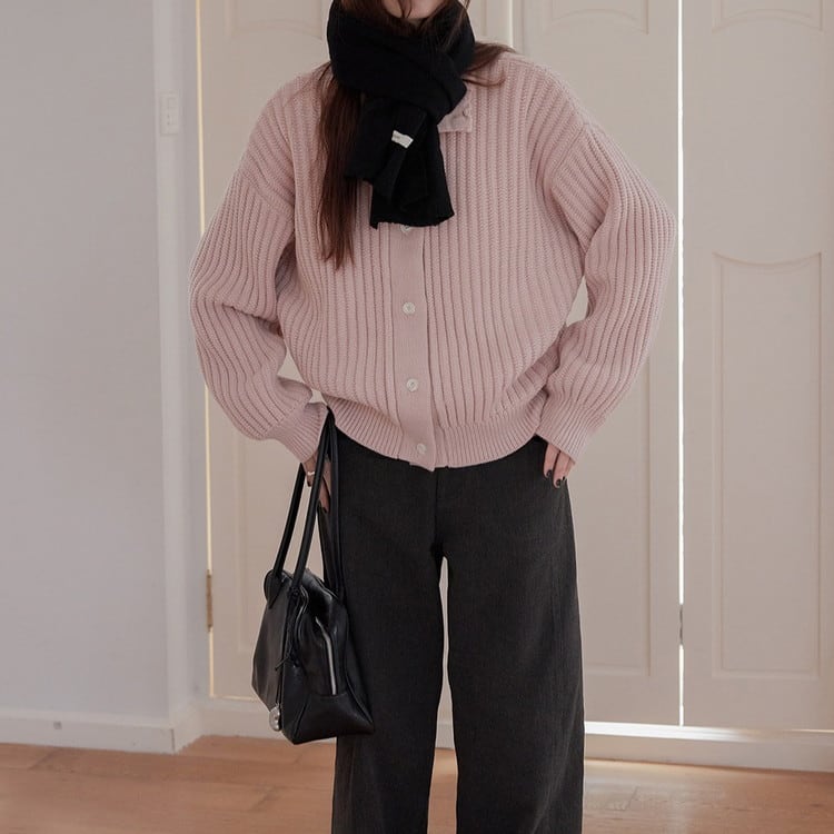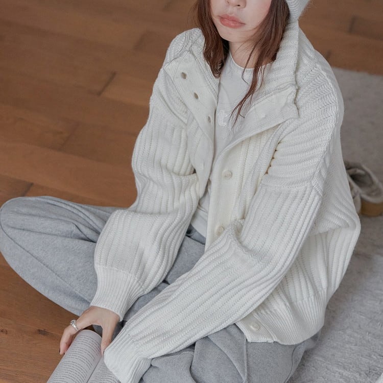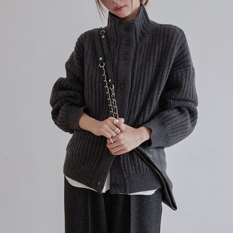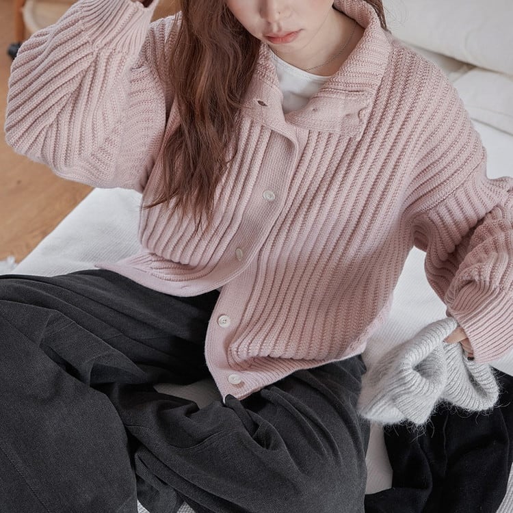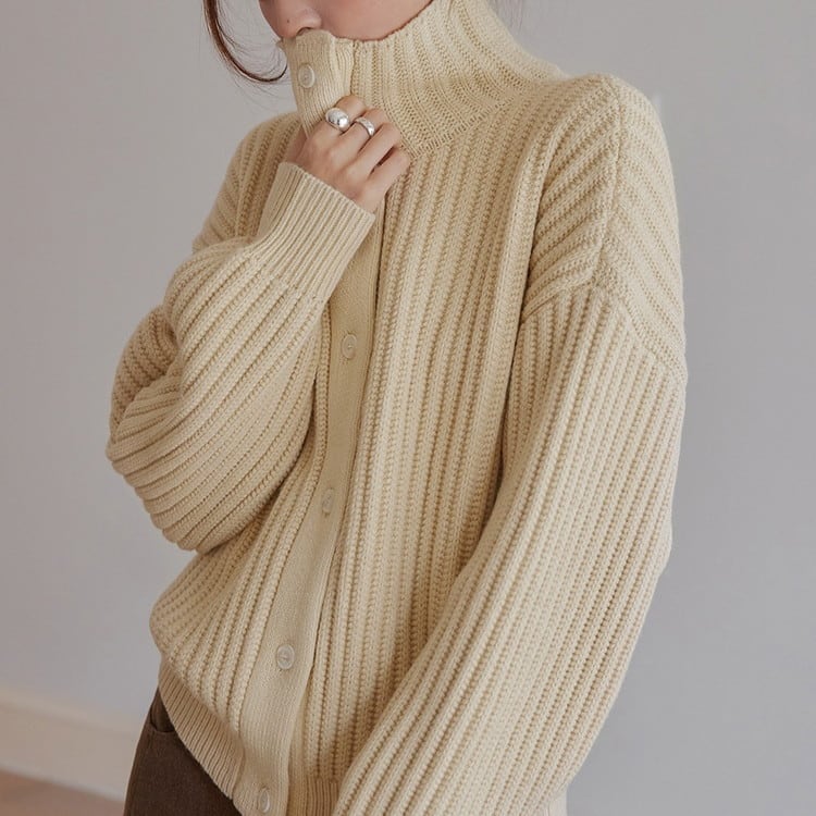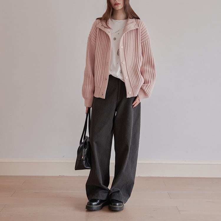 ワイドリブスタンドカラーカーディガン 4color [am03536]