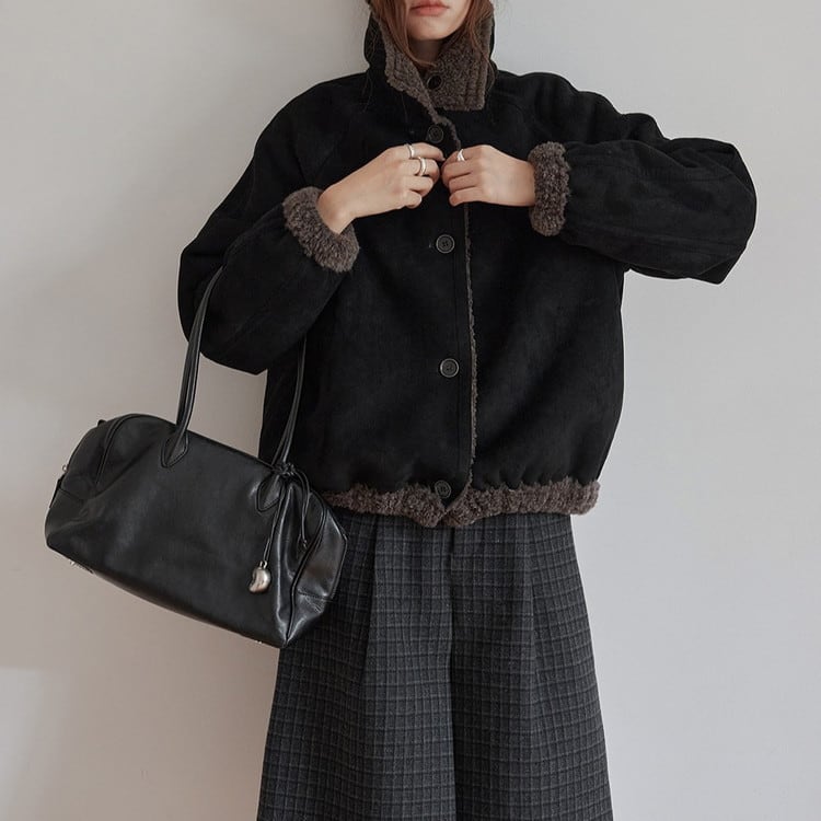 フェイクレザーリバーシブルブルゾン 2color [am03535]