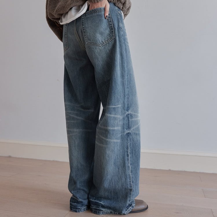 風合いのあるウォッシュドコットンワイドデニムパンツです。