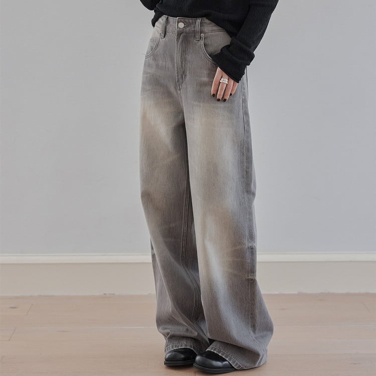 ウォッシュドコットンワイドデニムパンツ 2color [am03543]