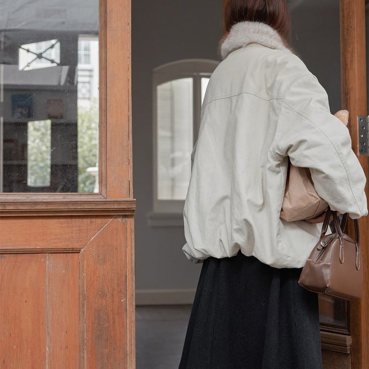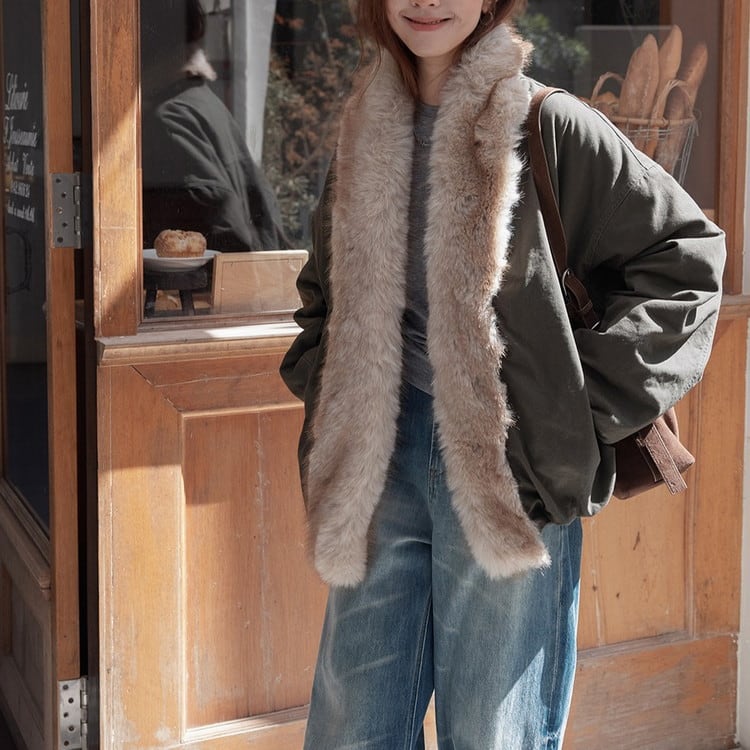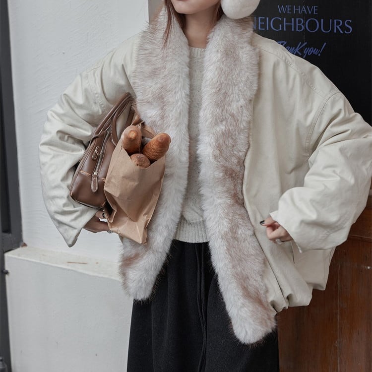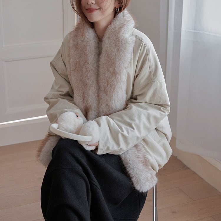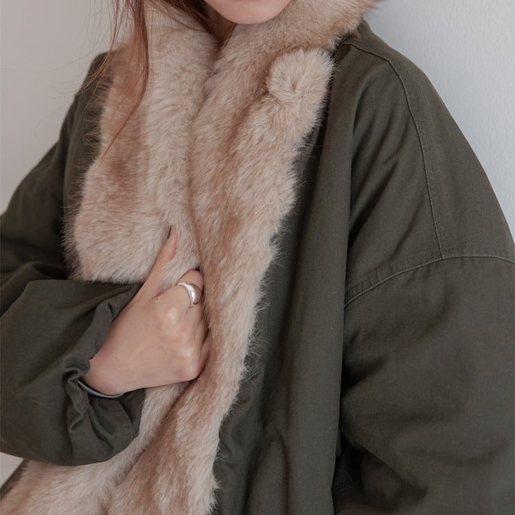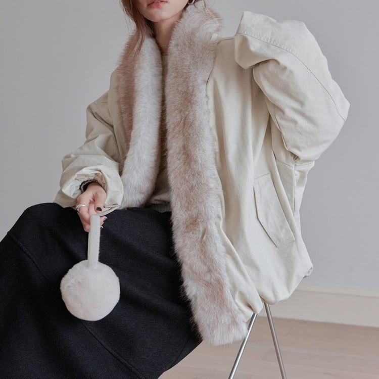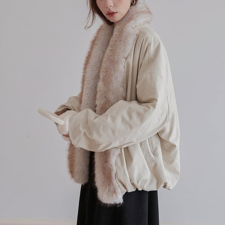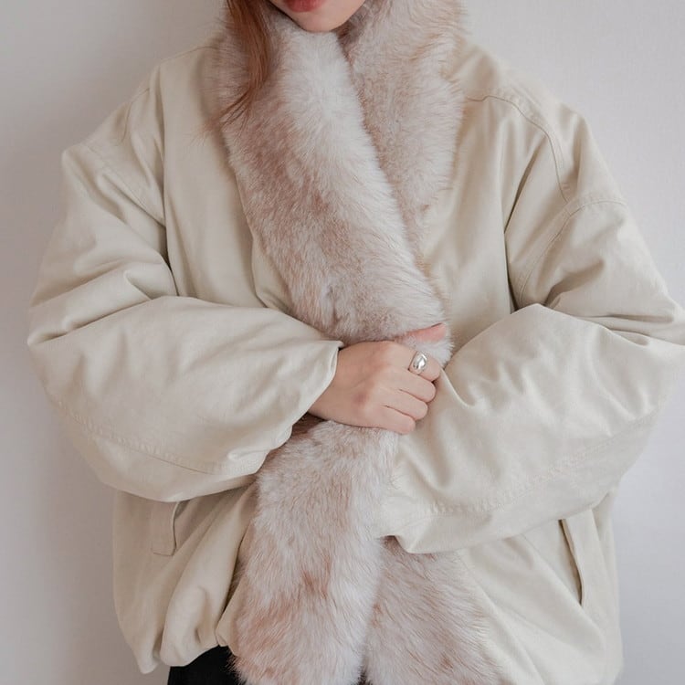 贅沢なファーカラーが華やかで、コーディネートのアクセントになるアイテムです。