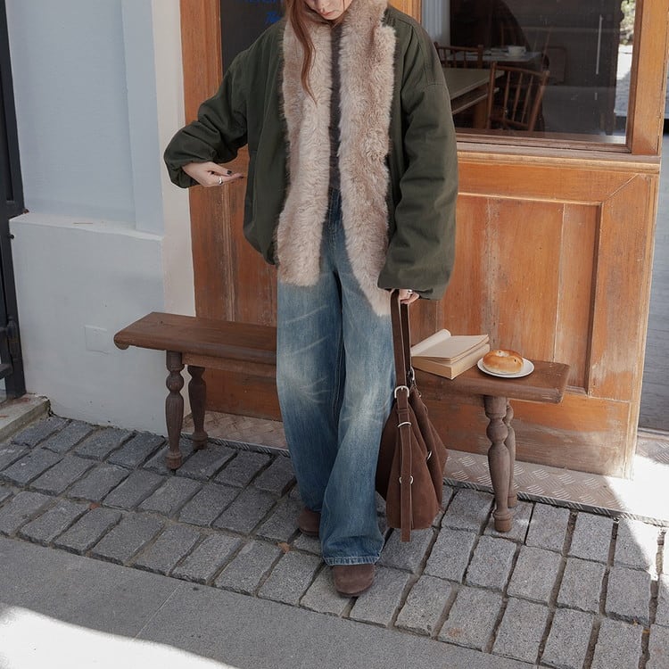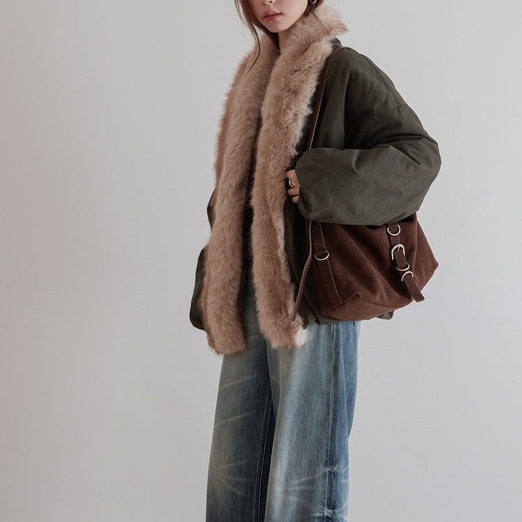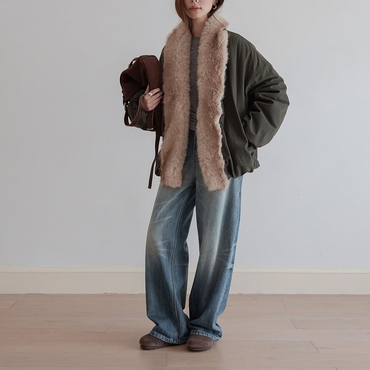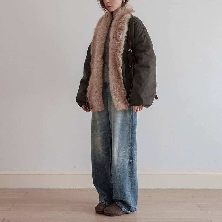 秋冬の雰囲気を漂わせるファーカラー中綿ワークブルゾンです。