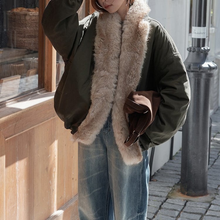 ファーカラー中綿ワークブルゾン 2color [am03546]
