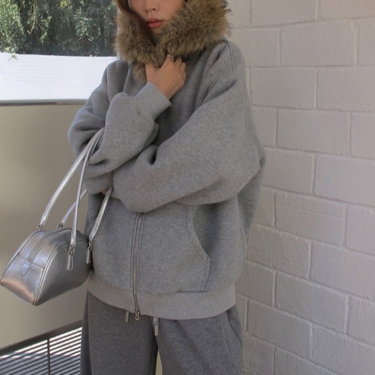 これからの季節にぴったりのオーバーサイズファーカラージップスウェットフーディです。