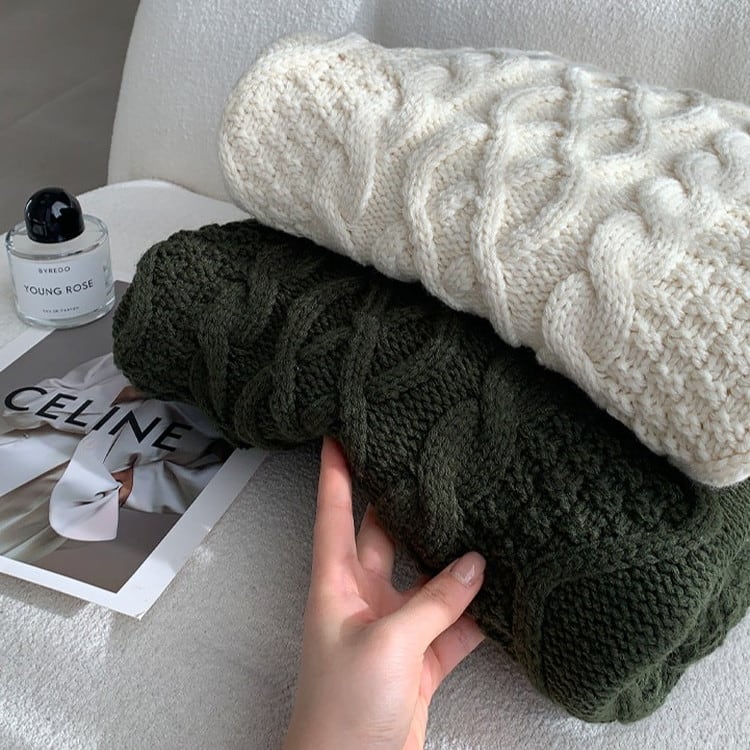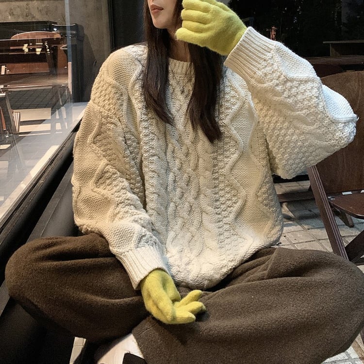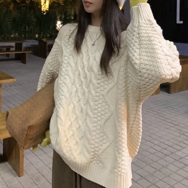 クルーネックケーブルニットプルオーバー 2color [am03574]