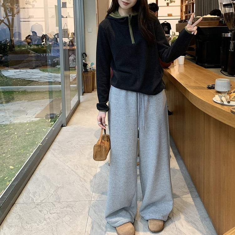 ドロスト裏起毛ワイドスウェットパンツ 4color [am03576]