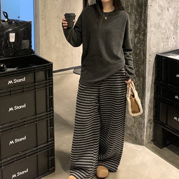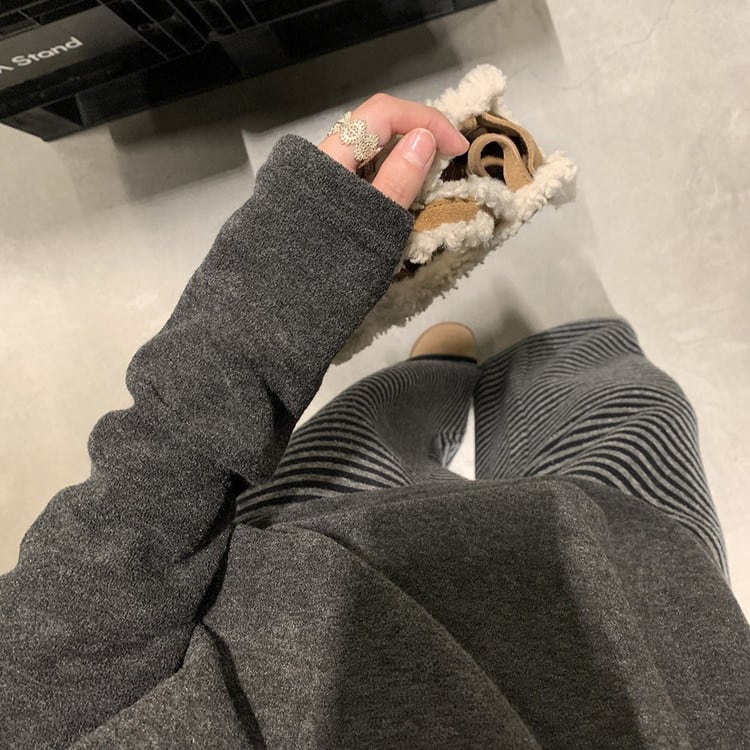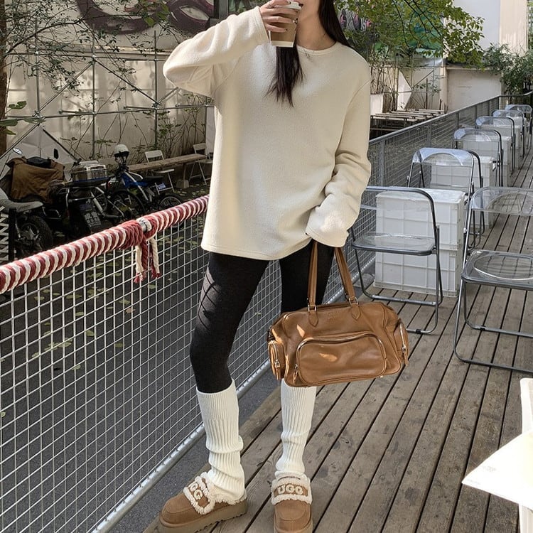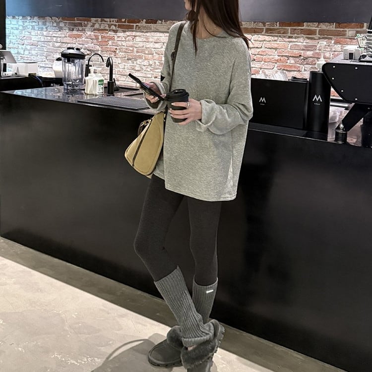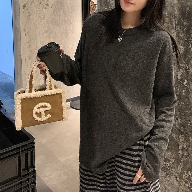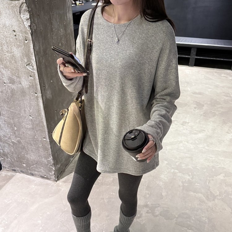 ルーズフィットクルーネックフリースロンTee 3color [am03577]