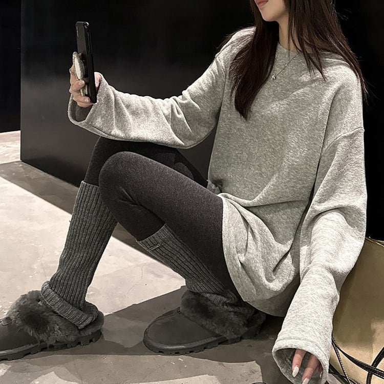 柔らかく暖かいルーズフィットクルーネックフリースロングTシャツです。