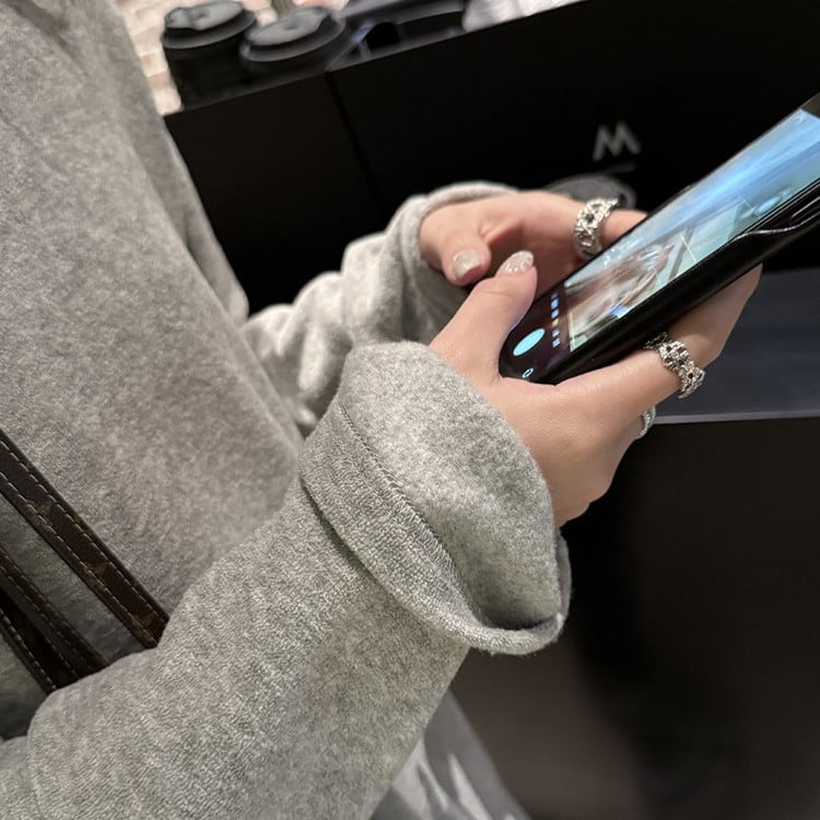 小さめのラウンドネックが、ネックラインを美しく引き立ててくれるアイテムです。
