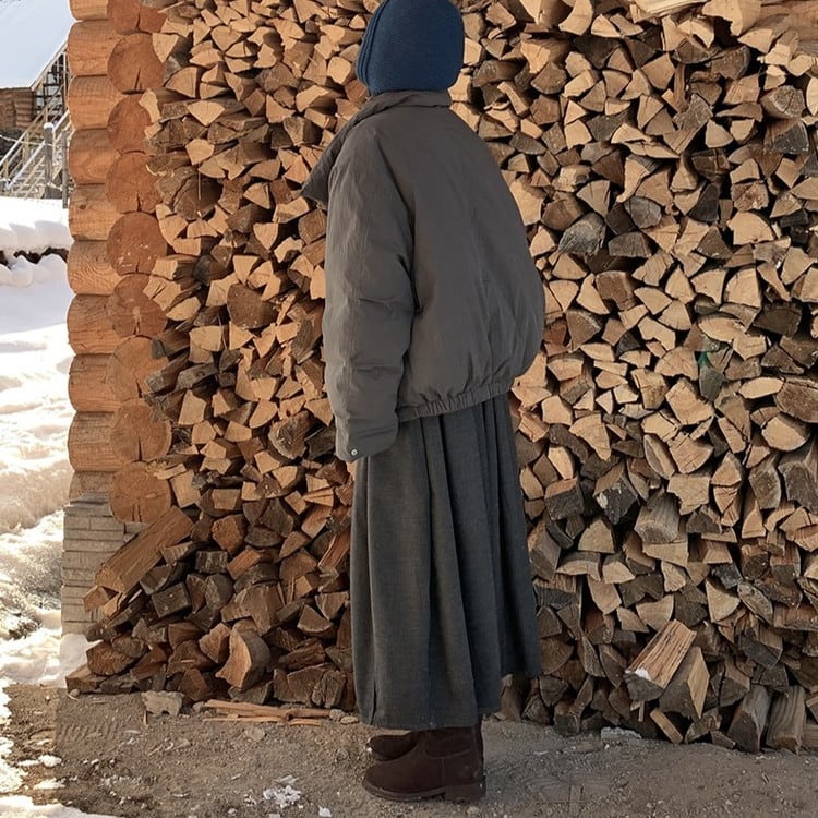 襟は立ててスタンドカラーとしても着用でき、軽くて暖かいアイテムです。