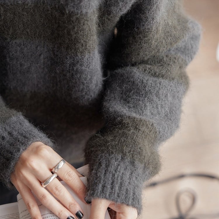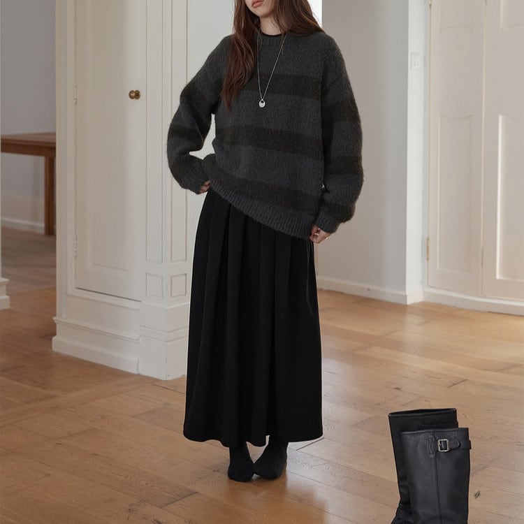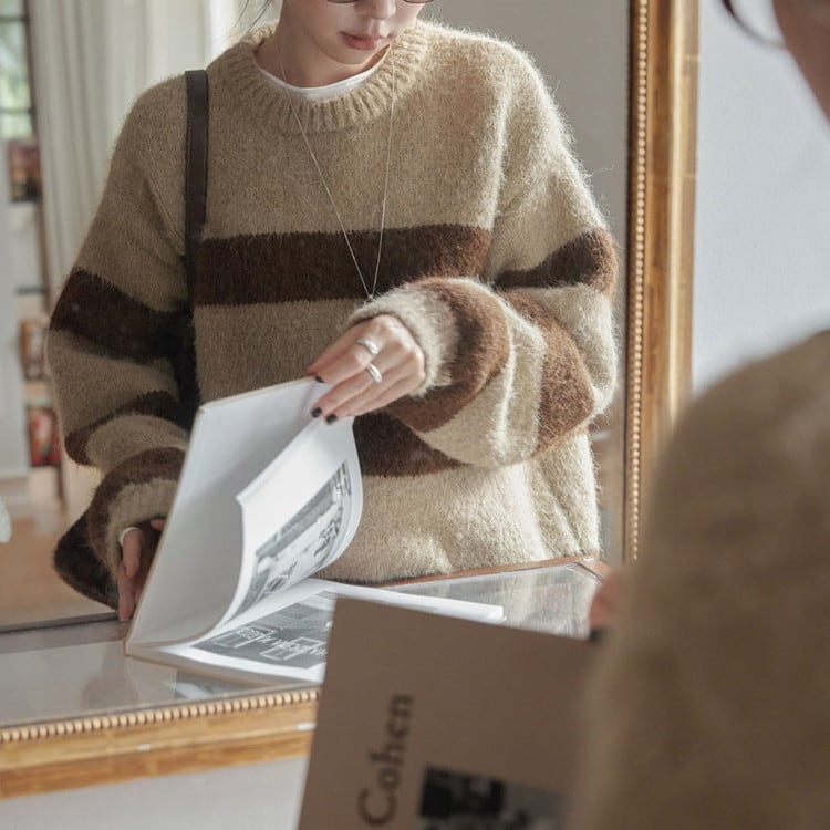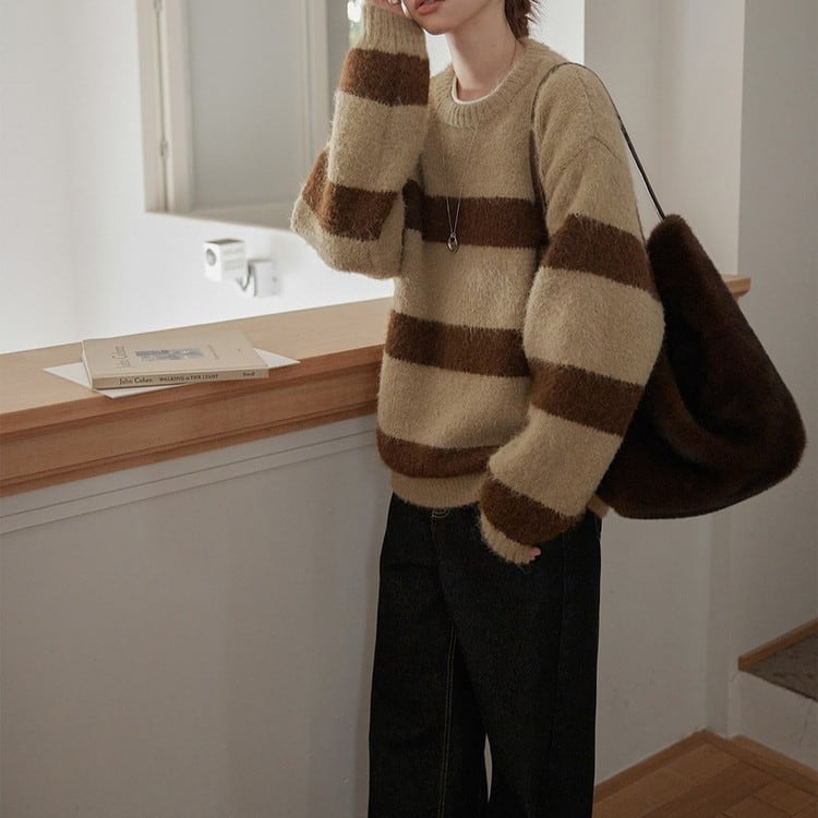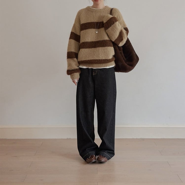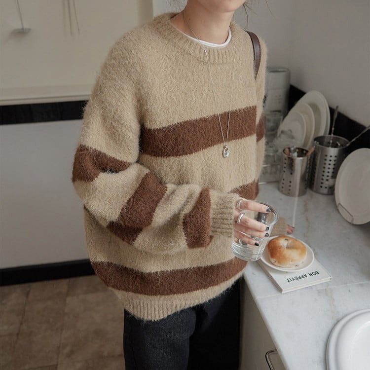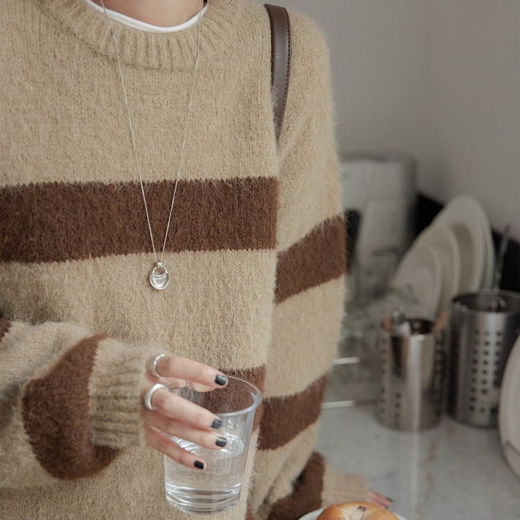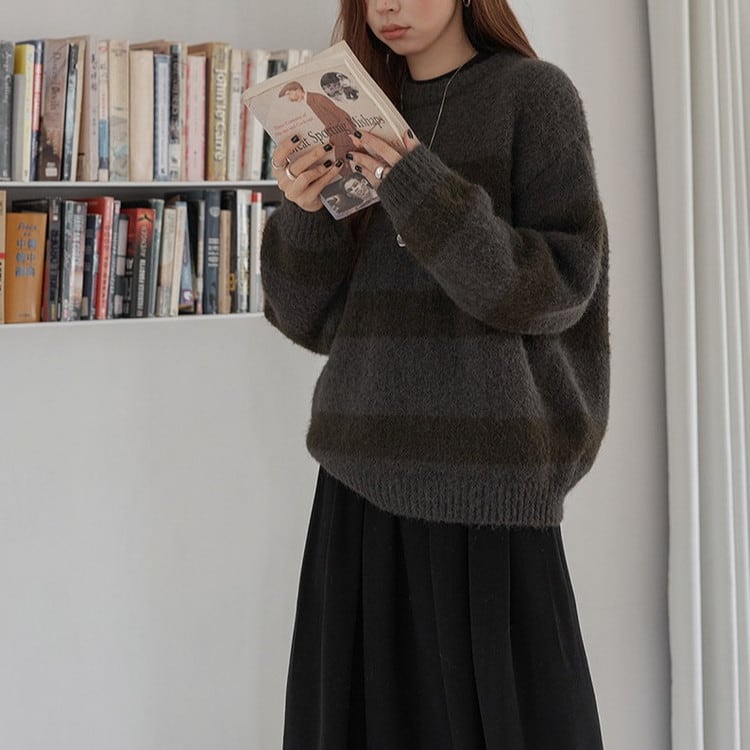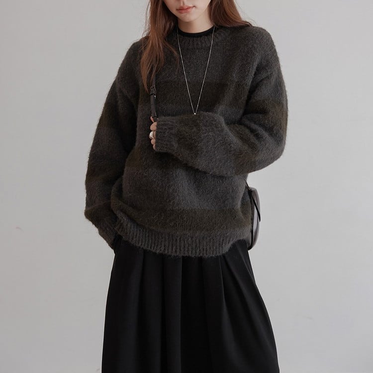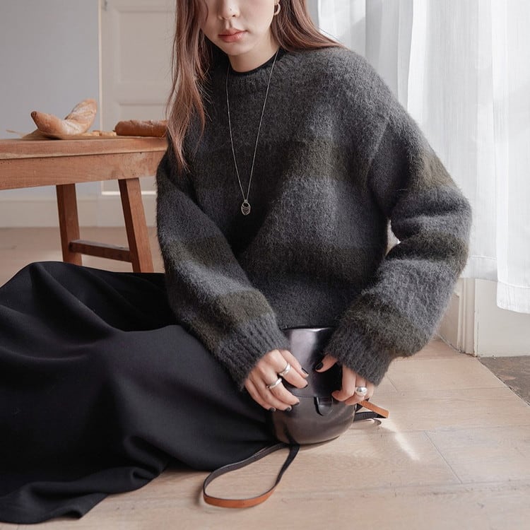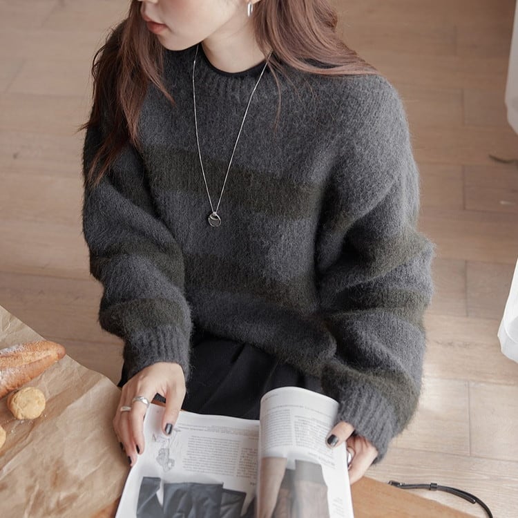 クルーネックボーダーニットプルオーバー 2color [am03590]