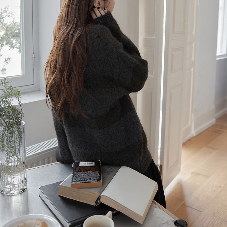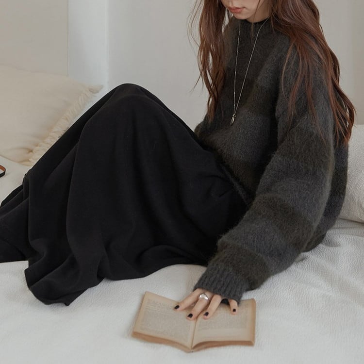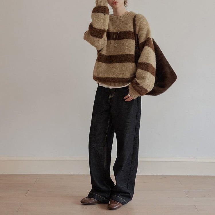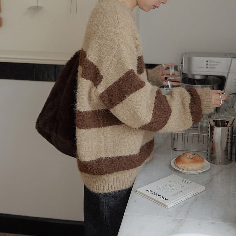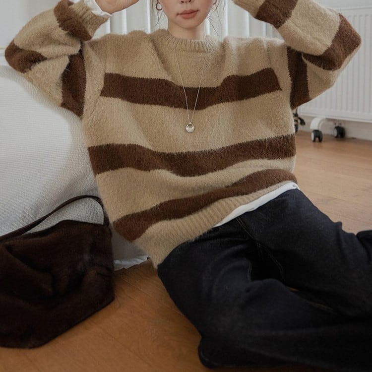 ふわふわで柔らかな生地感と太めのボーダー柄が魅力的◎