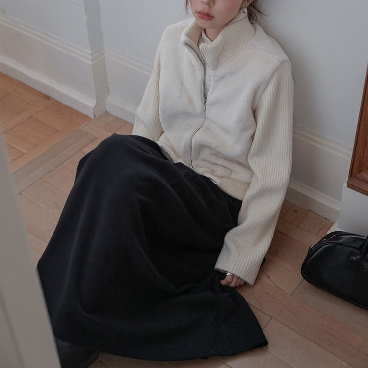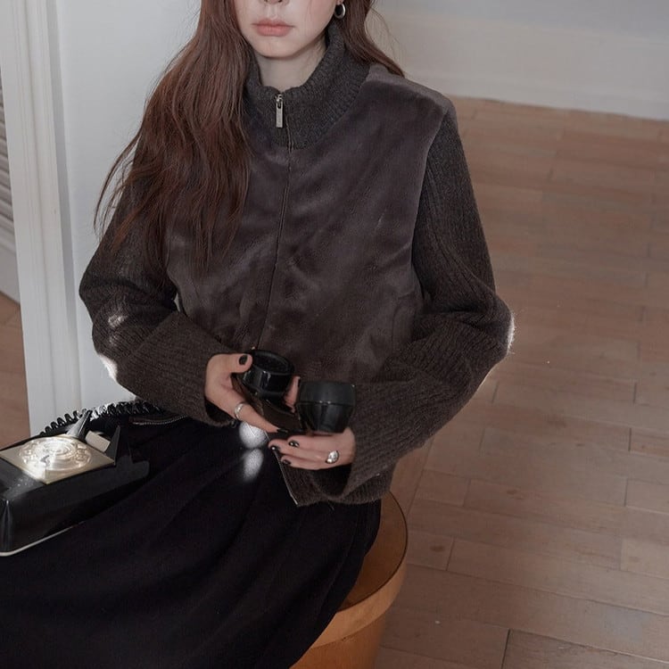 フェイクファージップスタンドカラーリブニット 2color [am03595]