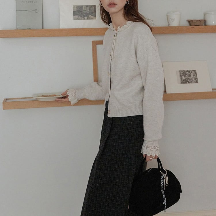 レーストリムニットカーディガン 2color [am03600]