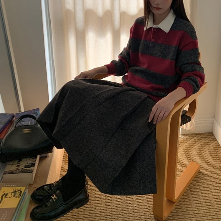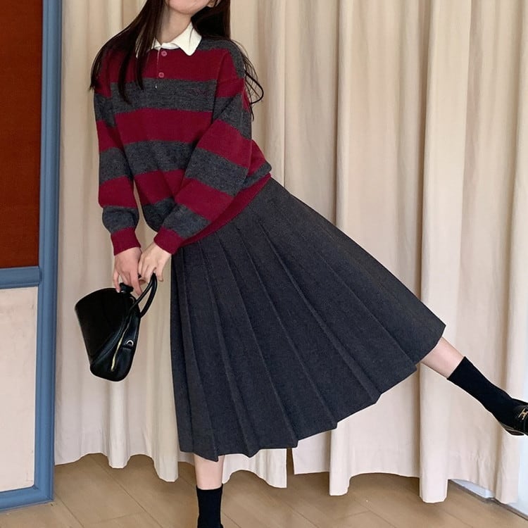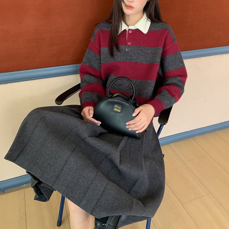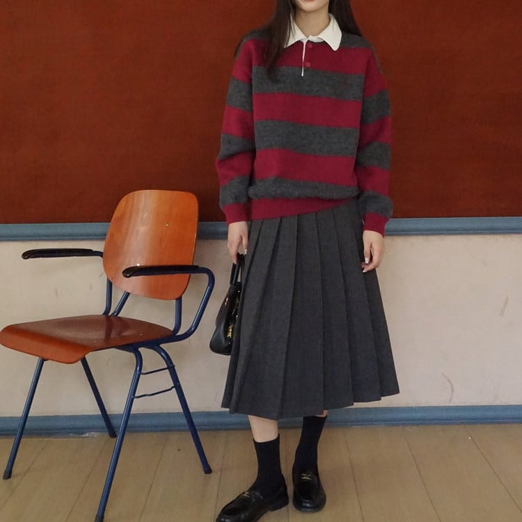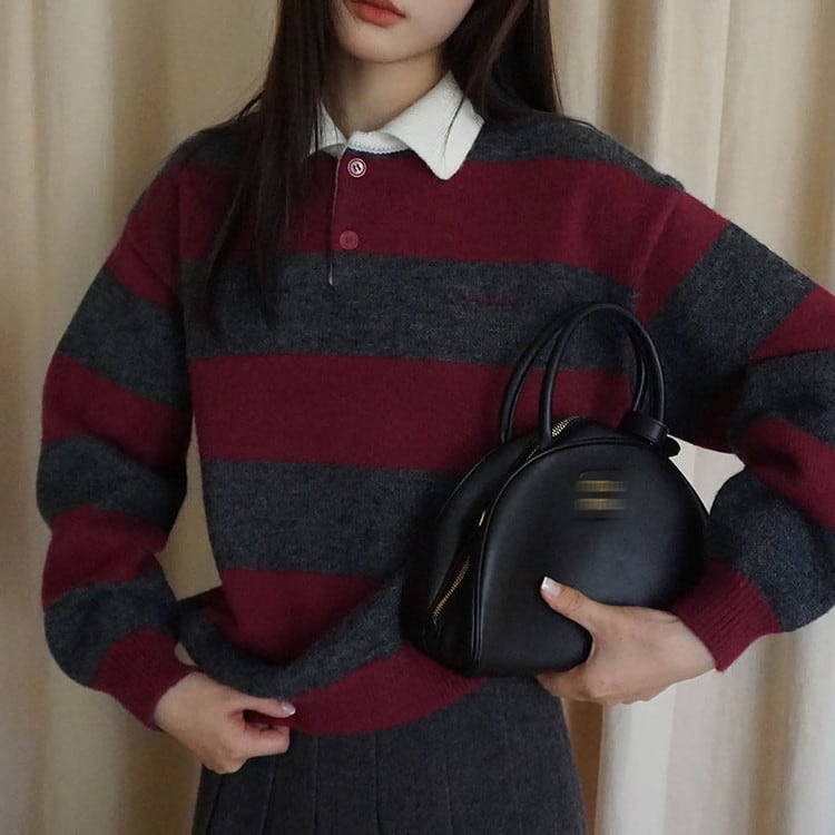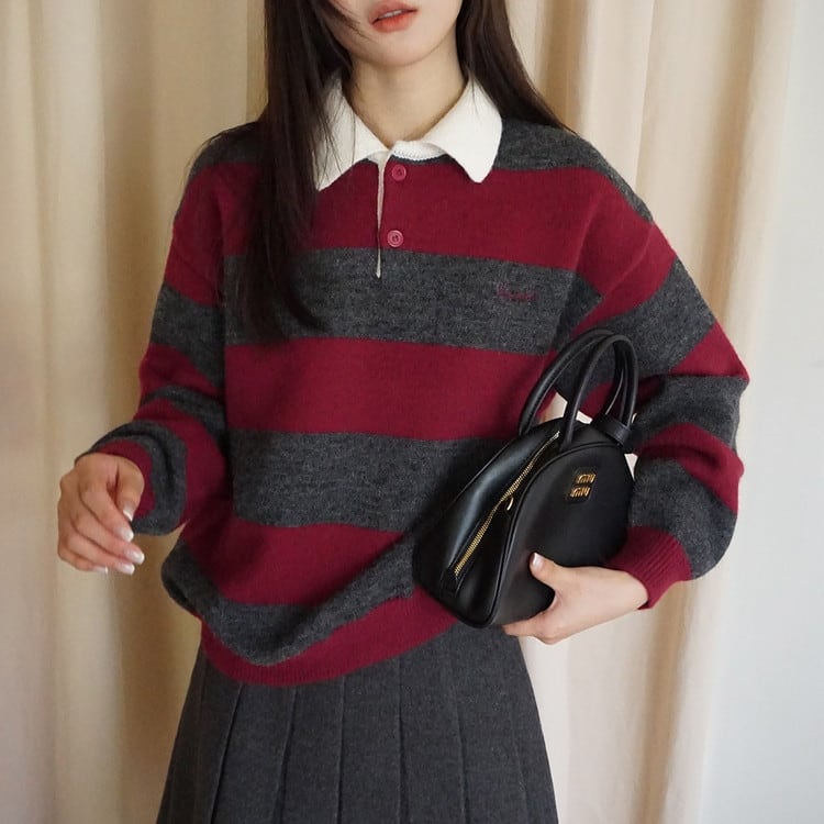 着映えするポロカラーボーダーニットです。